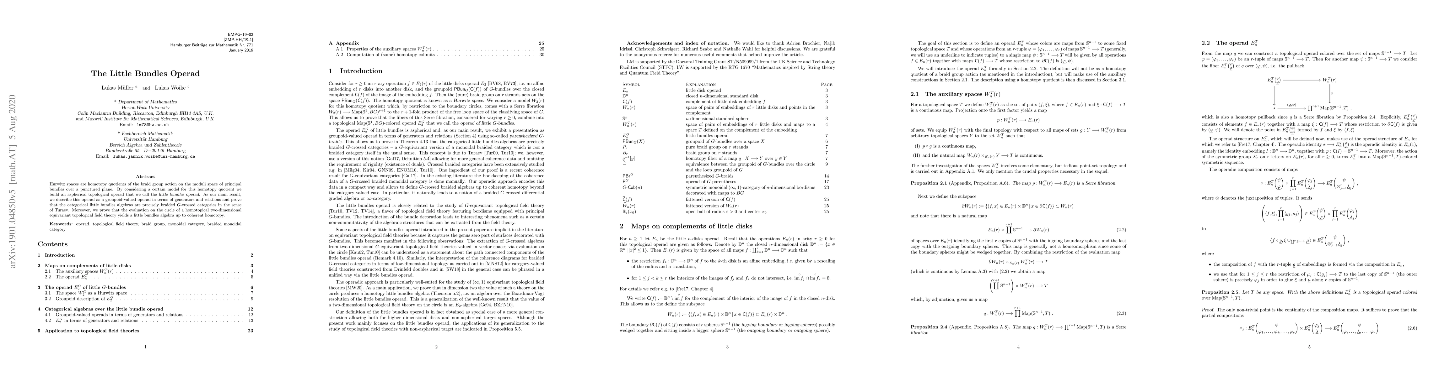 The detailed construction and characterization of the little bundles operad as a groupoid-valued operad, along with its equivalence to Turaev's crossed categories.