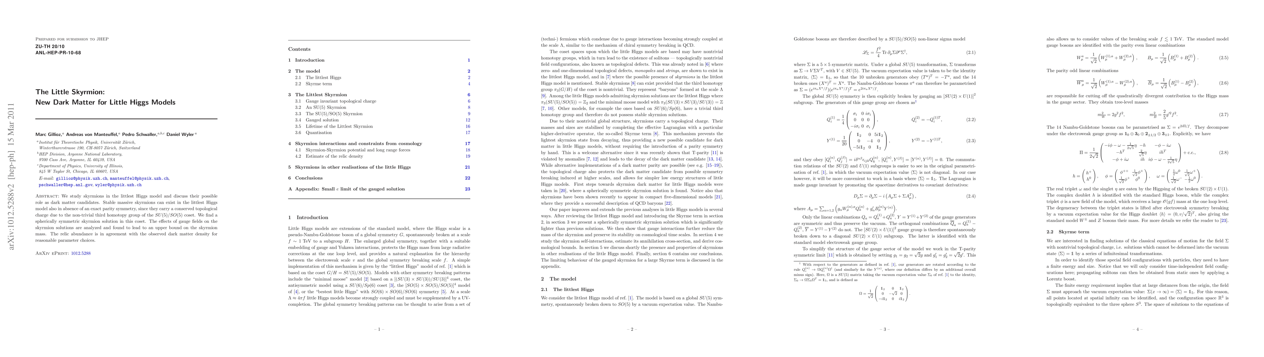 This paper proposes a new candidate for dark matter in the Little Higgs model: stable massive skyrmions that can exist without exact parity symmetry, with predicted relic abundance matching observed dark matter density.