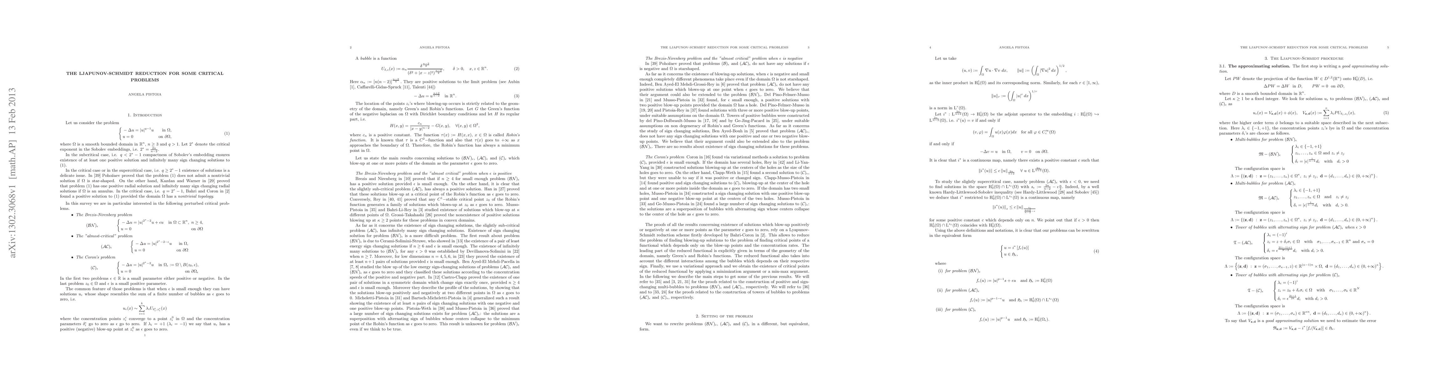 This is a survey about the application of the Ljapunov-Schmidt reduction for some critical problems.