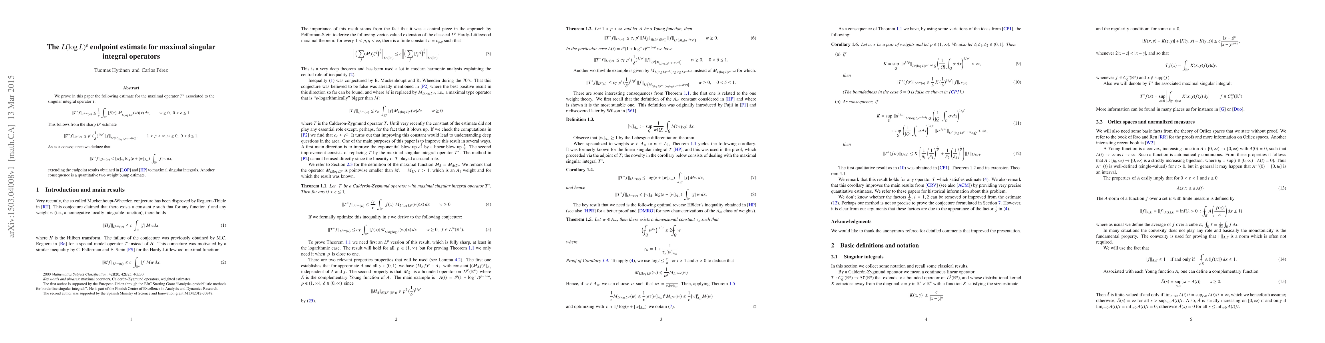 This paper establishes an $L(\log L)^{\epsilon}$ endpoint estimate for maximal singular integral operators, proving that $\|T^*f\|_{L^{1,\infty}(w)} \lesssim \frac{1}{\epsilon} \int_{\mathbb{R}^n} |f(x)| M_{L(\log L)^{\epsilon}} (w)(x)dx$. It also extends endpoint results to maximal singular integrals and provides a quantitative two weight bump estimate.