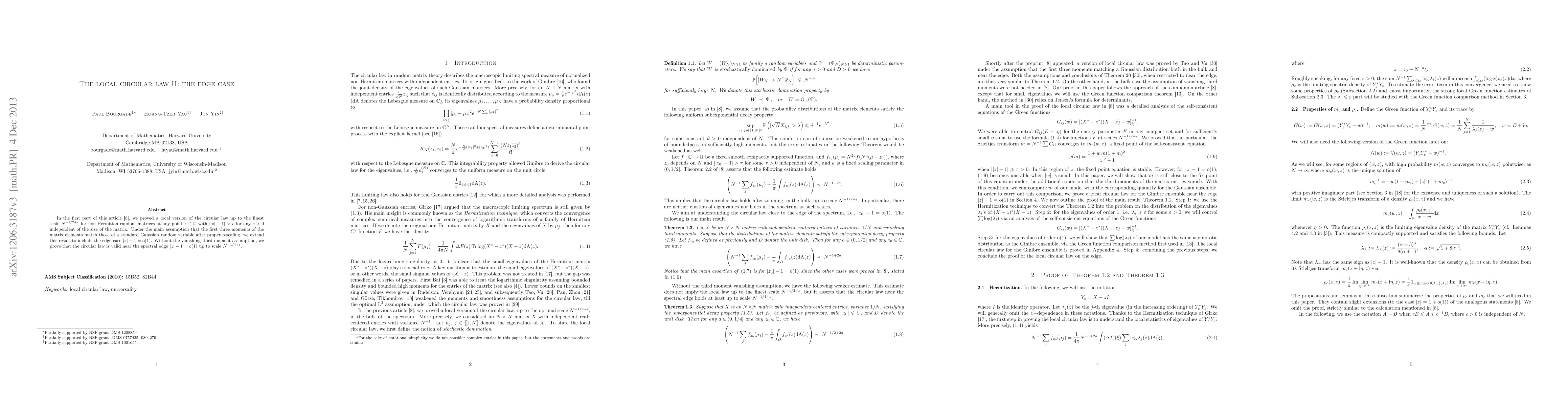 The paper presents detailed lemmas and proofs, extending previous work on the local circular law to encompass the edge case, thereby refining the understanding of spectral density near the spectral edge for non-Hermitian matrices.