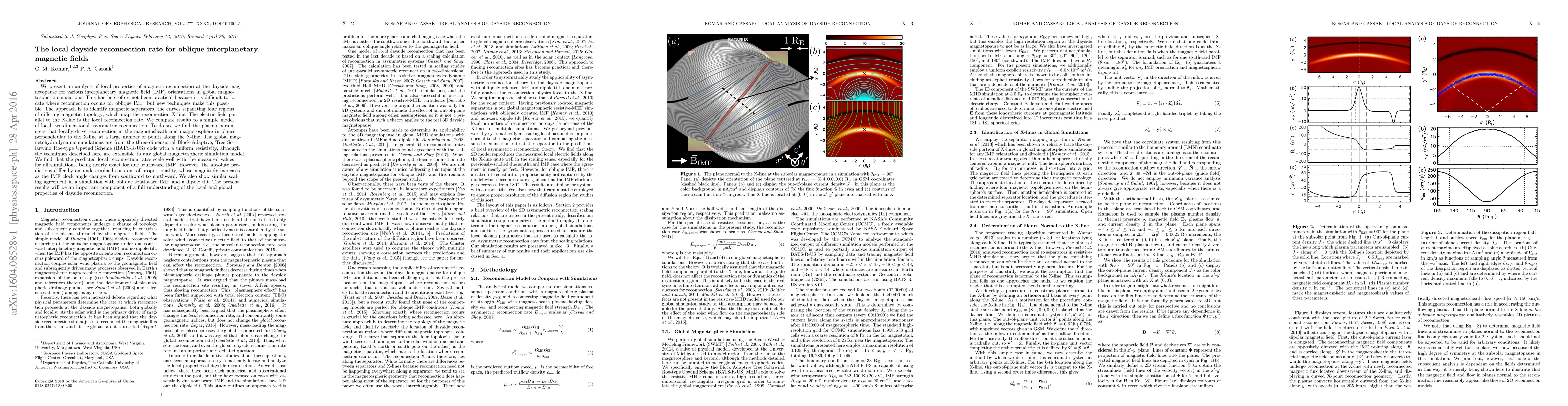 This paper analyzes local reconnection rates at the dayside magnetopause using global magnetospheric simulations and new techniques to locate reconnection events for oblique interplanetary magnetic fields. It finds that predicted local reconnection rates scale well with measured values, though with an undetermined proportionality constant that varies with IMF clock angle.