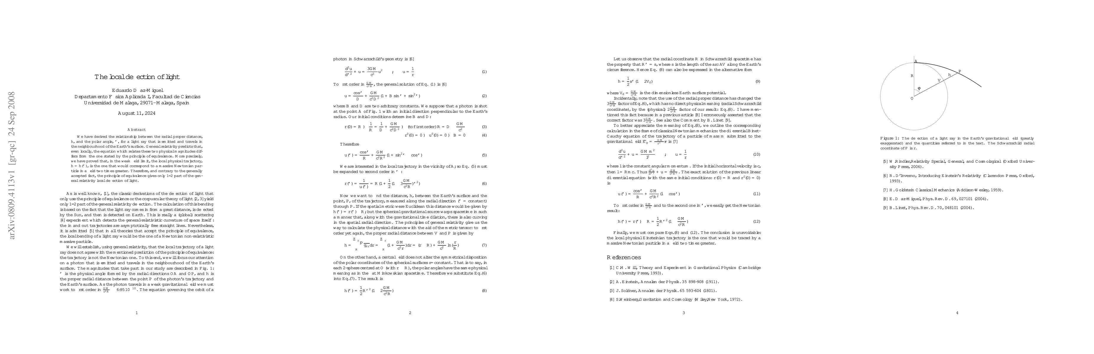 We have derived the relationship between the radial proper distance, h, and the polar angle, phi, for a light ray that is emitted and travels in the neighborhood of the Earth's surface. General relativity predicts that, even locally, the equation which relates these two physical magnitudes differs from the one stated by the principle of equivalence. More precisely, we have proved that, in the weak field limit, the local physical trajectory, h=h(phi), is the one that would correspond to a massive Newtonian particle in a field two times greater. Therefore, and contrary to the generally accepted fact, the principle of equivalence gives only 1/2 part of the general relativity local deflection of light.