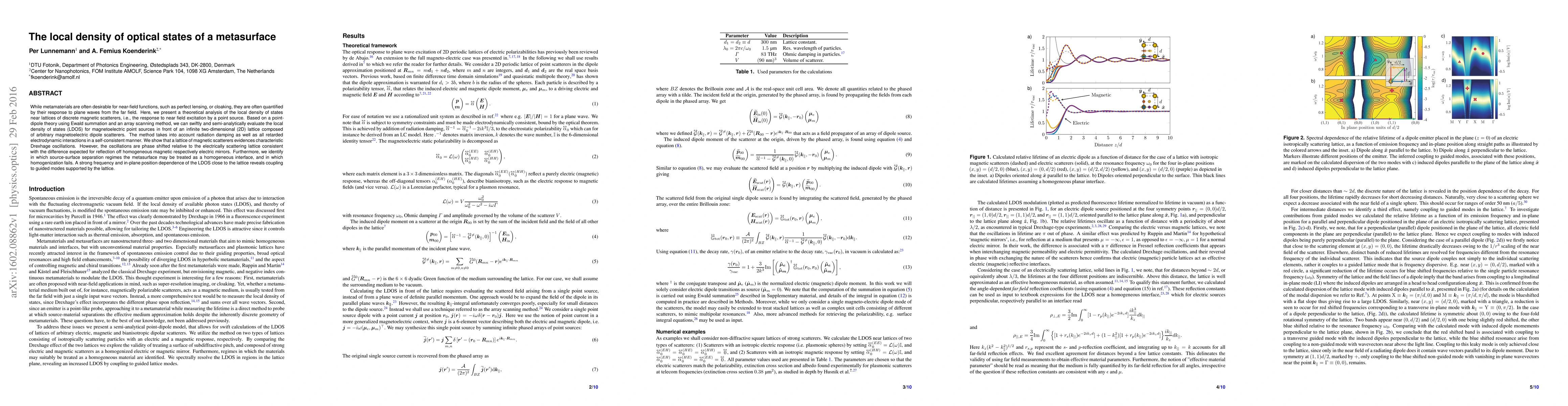 This paper presents a theoretical analysis of the local density of optical states (LDOS) near lattices of magnetic scatterers, using point-dipole theory and Ewald summation. The study reveals characteristic Drexhage oscillations and identifies conditions where the metasurface can be treated as a homogeneous interface.