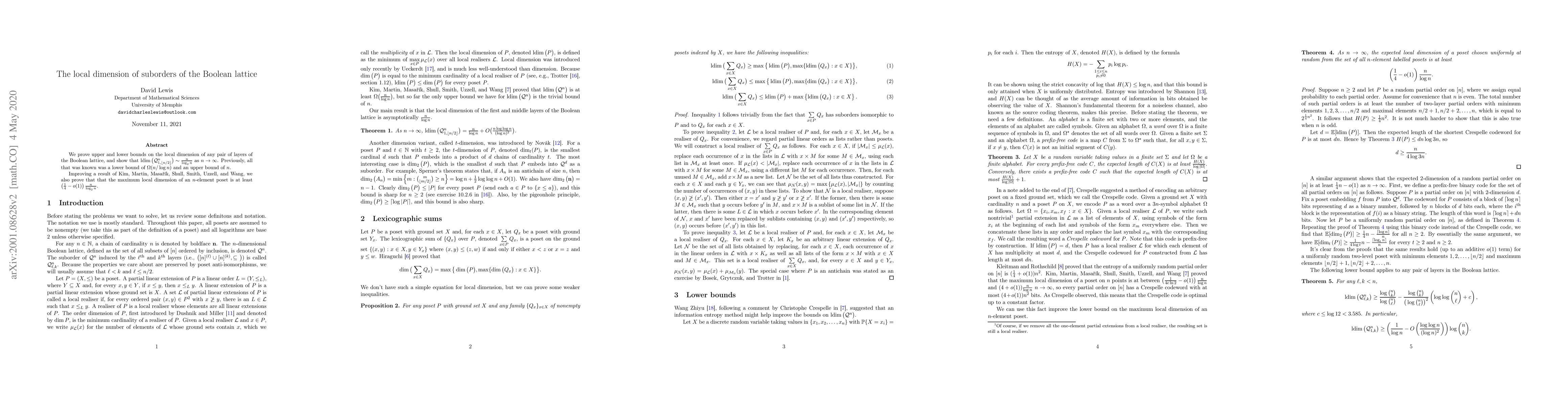 The paper introduces a novel approach using entropy and coding theory to bound the local dimension of suborders of the Boolean lattice, improving upon previous results.