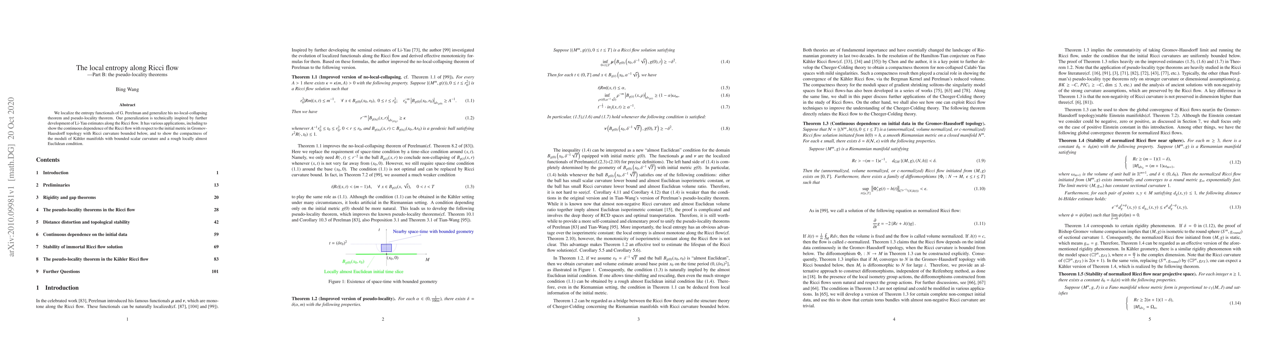 Summary: This paper localizes and generalizes Perelman's entropy functionals and associated theorems under Ricci flow, inspired by advancements in Li-Yau estimates. It demonstrates continuous dependence of Ricci flow on initial metrics and proves the compactness of moduli for Kähler manifolds with bounded scalar curvature and specific conditions.