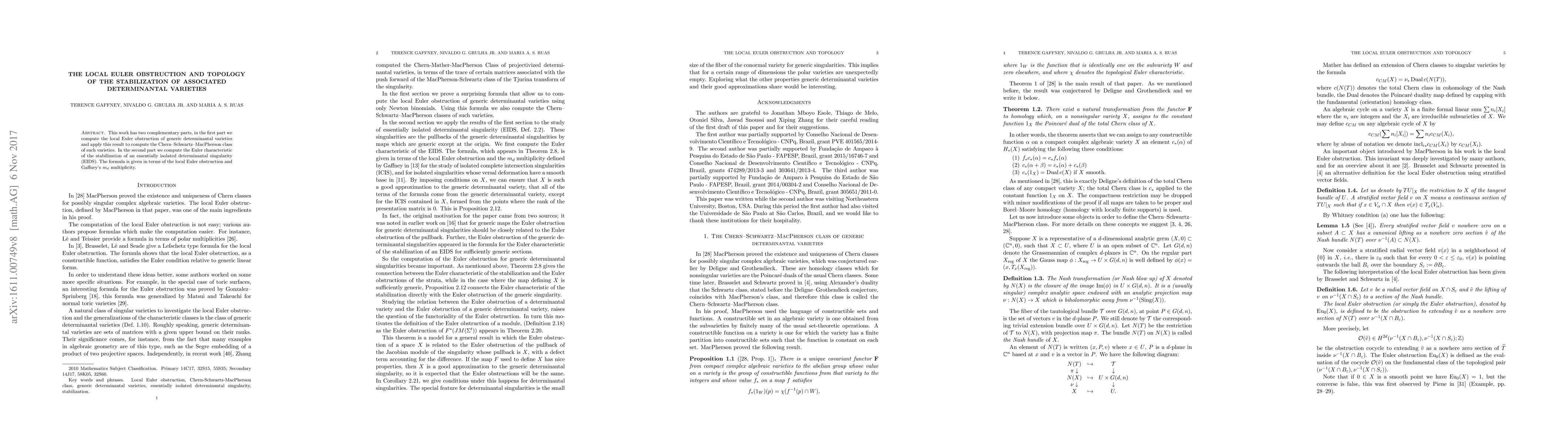 This work has two complementary parts, in the first part we compute the local Euler obstruction of generic determinantal varieties and apply this result to compute the Chern--Schwartz--MacPherson class of such varieties. In the second part we compute the Euler characteristic of the stabilization of an essentially isolated determinantal singularity (EIDS). The formula is given in terms of the local Euler obstruction and Gaffney's $m_{d}$ multiplicity.