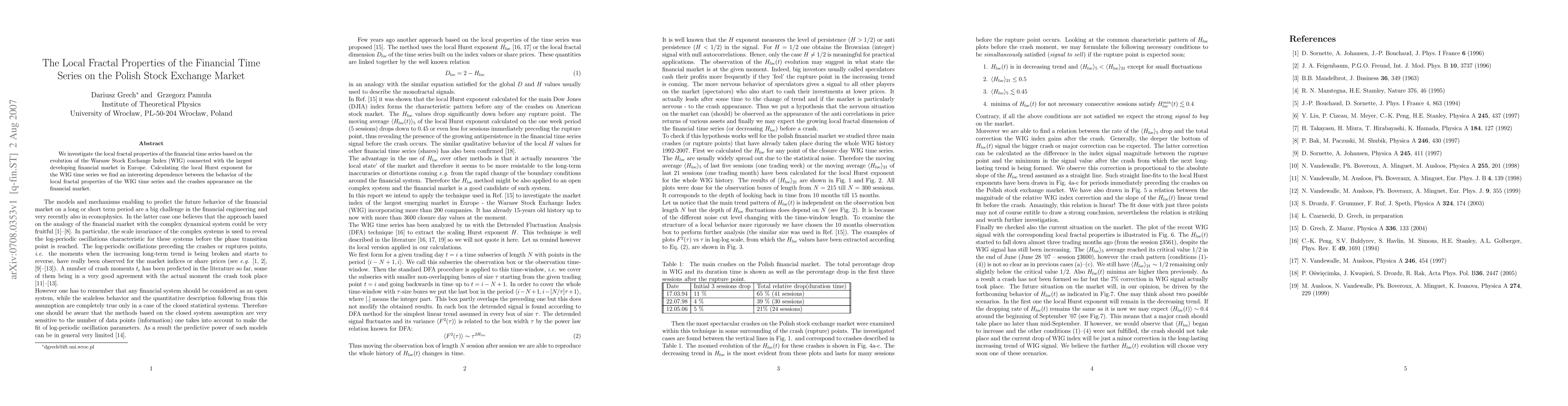 This paper examines the local fractal properties of the Warsaw Stock Exchange Index (WIG) using the local Hurst exponent, revealing a significant correlation between the local fractal characteristics and the occurrence of financial market crashes.