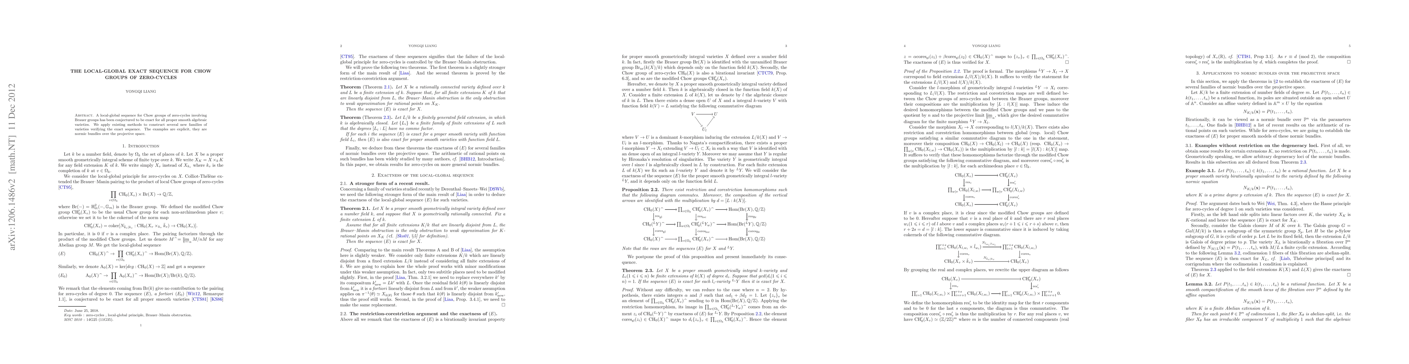 This paper explores the local-global exact sequence for Chow groups of zero-cycles, verifying the conjecture for proper smooth algebraic varieties through new families of normic bundles over projective space. The constructions provide explicit examples demonstrating the sequence's exactness.