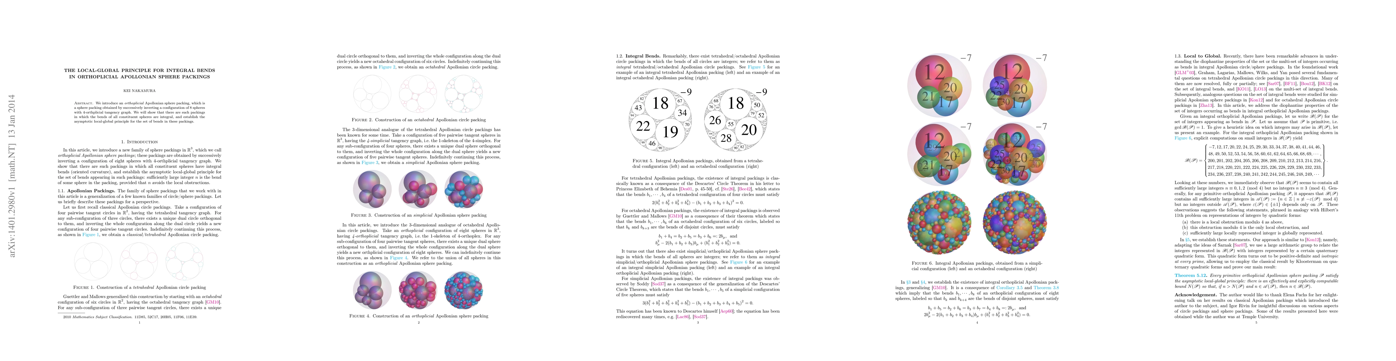 The paper introduces orthoplicial Apollonian sphere packings and demonstrates the existence of packings where all sphere bends are integral. It establishes an asymptotic local-global principle for the bends within these packings.