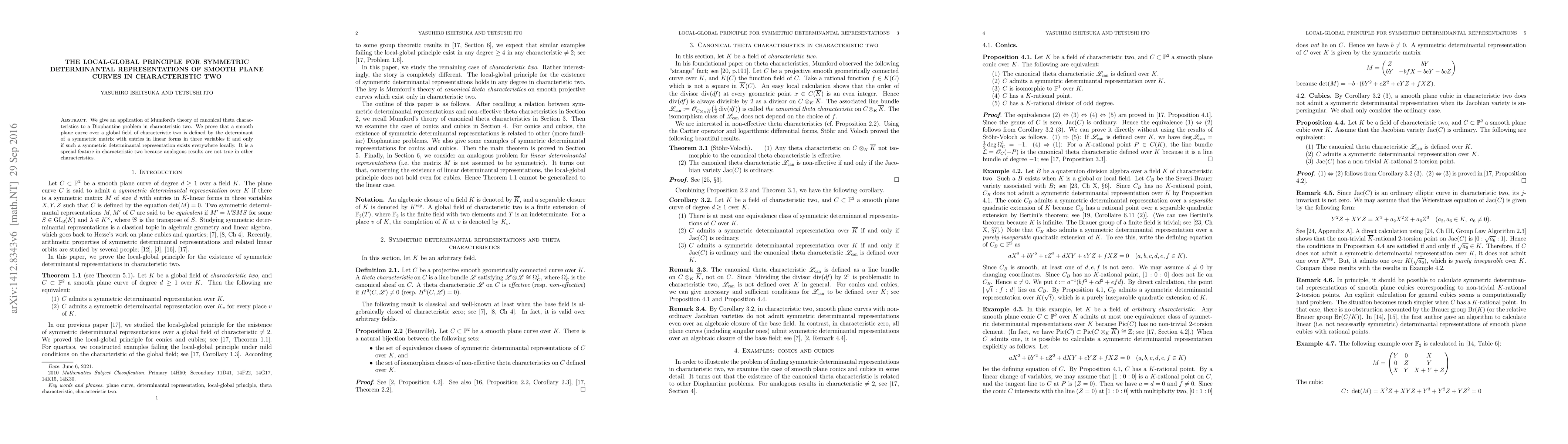 Summary: This paper applies Mumford's theory to demonstrate that a smooth plane curve in characteristic two can be represented by symmetric determinantal forms if and only if such representations exist locally, highlighting a unique characteristic two phenomenon absent in other characteristics.
