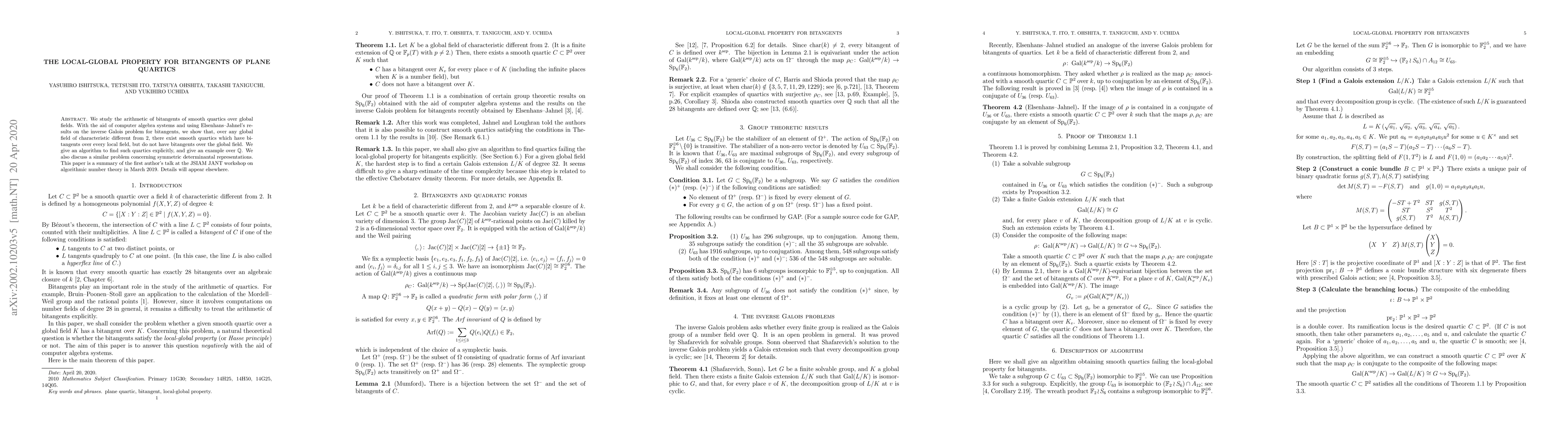We study the arithmetic of bitangents of smooth quartics over global fields. With the aid of computer algebra systems and using Elsenhans--Jahnel's results on the inverse Galois problem for bitangents, we show that, over any global field of characteristic different from $2$, there exist smooth quartics which have bitangents over every local field, but do not have bitangents over the global field. We give an algorithm to find such quartics explicitly, and give an example over $\mathbb{Q}$. We also discuss a similar problem concerning symmetric determinantal representations. This paper is a summary of the first author's talk at the JSIAM JANT workshop on algorithmic number theory in March 2019. Details will appear elsewhere.