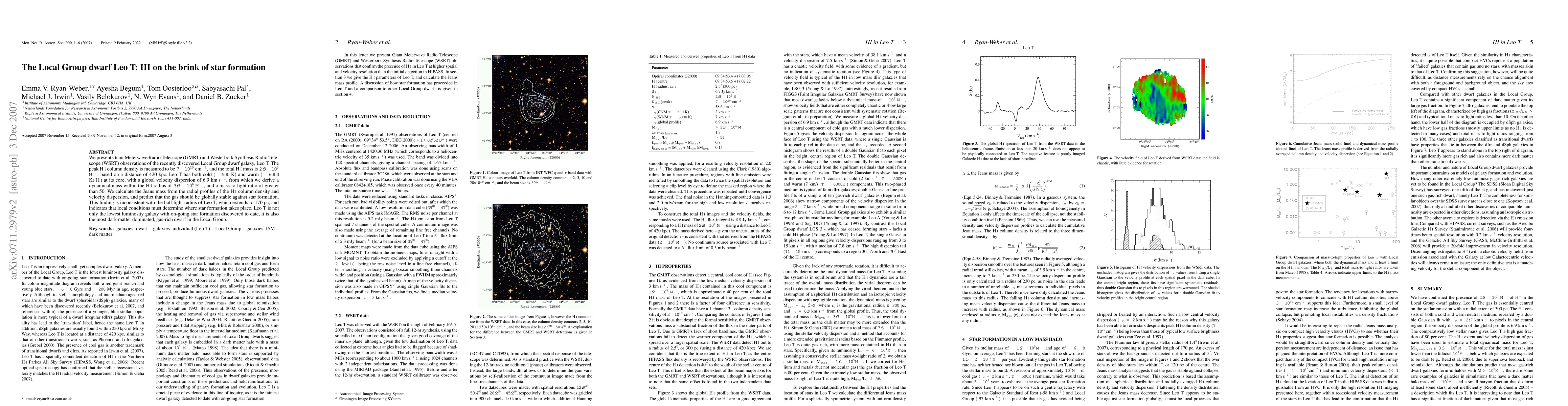 This paper reports on GMRT and WSRT observations of the dwarf galaxy Leo T, revealing a high HI column density and mass, indicating gas stability against star formation, despite ongoing star formation suggesting local conditions drive this process. Leo T is the lowest luminosity galaxy with ongoing star formation and the most dark matter dominated, gas-rich dwarf in the Local Group.