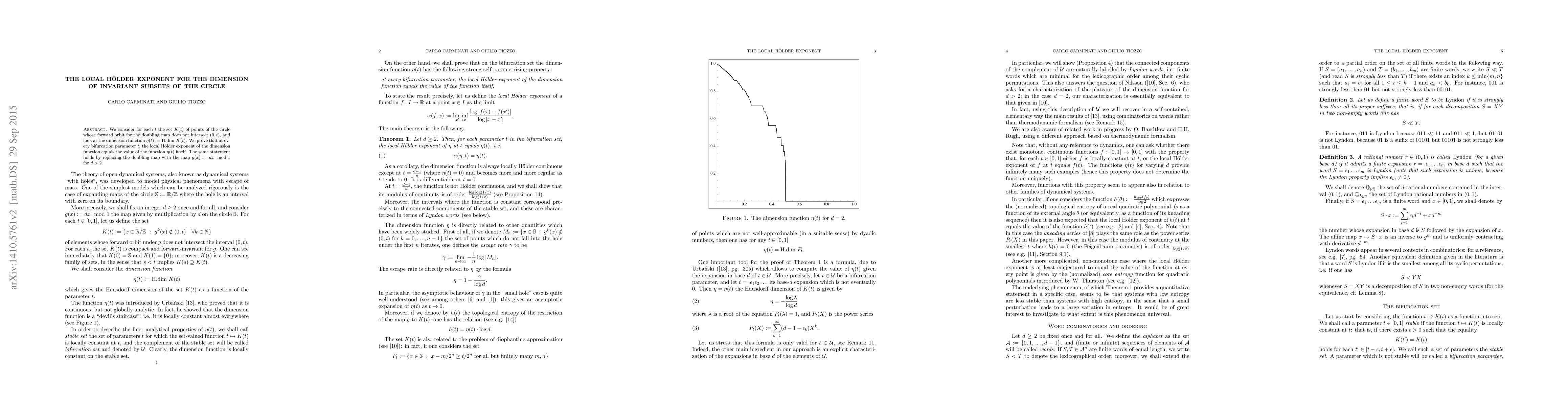 Summary: This paper investigates the local Hölder exponent for the dimension of invariant subsets of the circle under the doubling map and a generalized map. It proves that at bifurcation parameters, the local Hölder exponent matches the dimension function value.