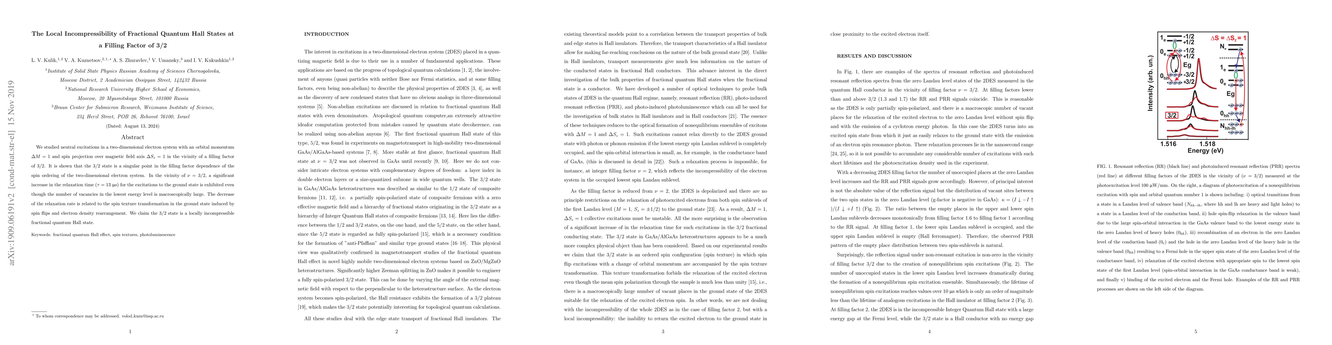 Researchers found that a fractional quantum Hall state at a filling factor of 3/2 is locally incompressible, despite having a large number of vacancies in its ground state, leading to an unusually long relaxation time for excitations.