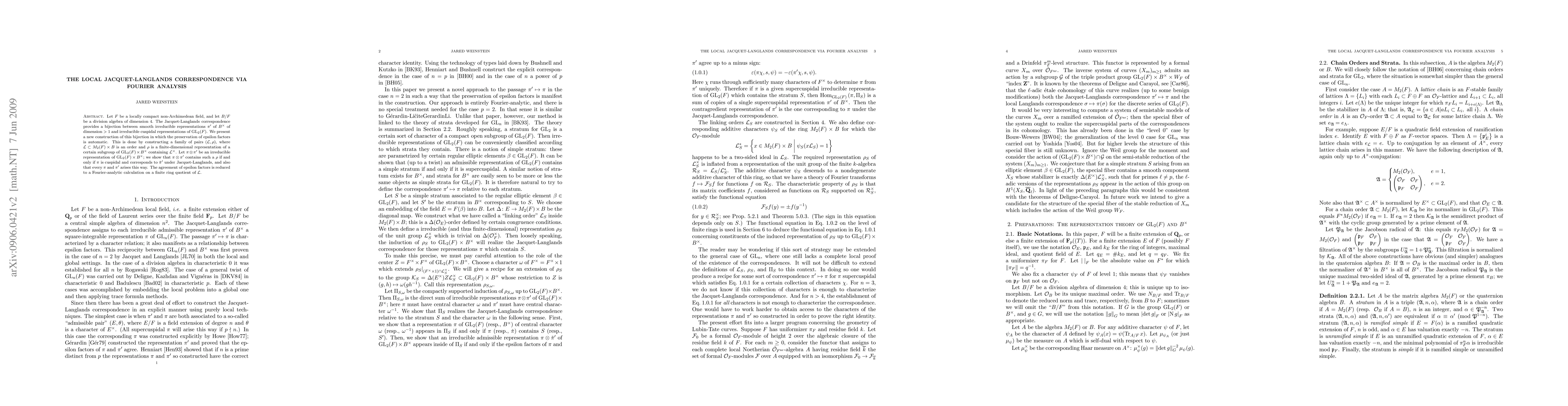 This paper constructs a new bijection for the local Jacquet-Langlands correspondence using Fourier analysis, linking smooth irreducible representations of a division algebra $B/F$ to irreducible cuspidal representations of $GL_2(F)$, with automatic preservation of epsilon factors.