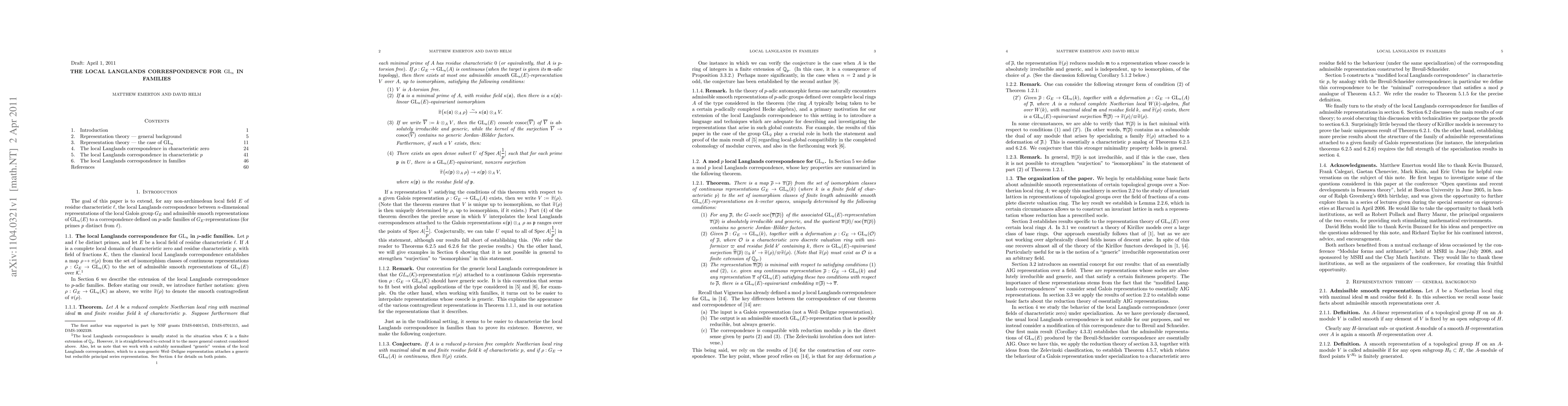 The work presents a novel perspective on the local Langlands correspondence by considering it in families, offering a more detailed analysis than previous isolated point studies.