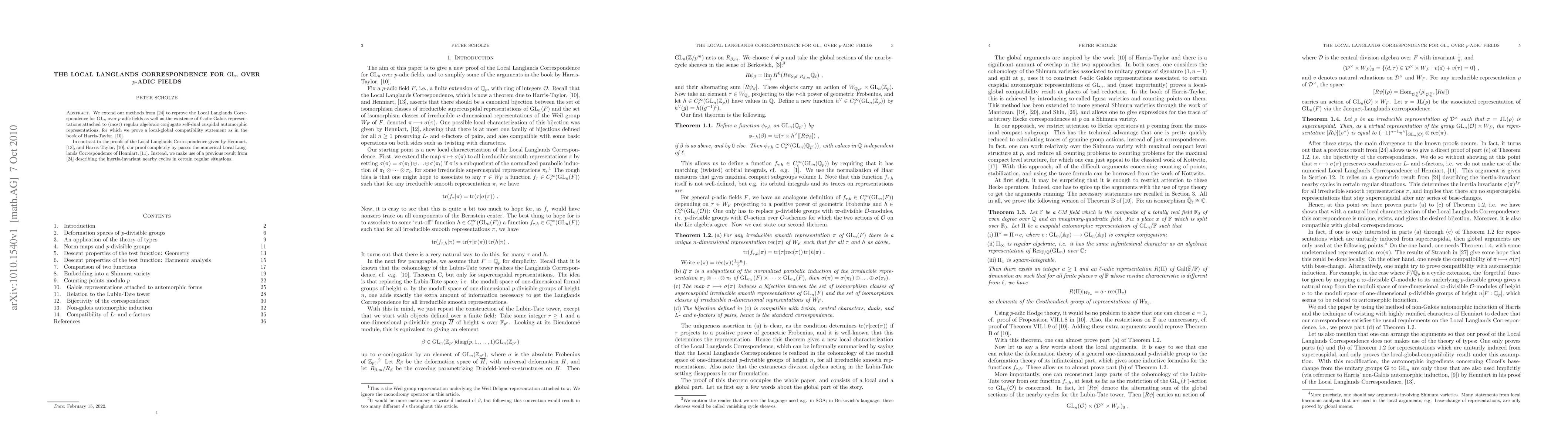 The paper reproves the Local Langlands Correspondence for GL_n over p-adic fields, bypassing the numerical Local Langlands Correspondence of Henniart. It establishes a local-global compatibility statement similar to Harris-Taylor's book.