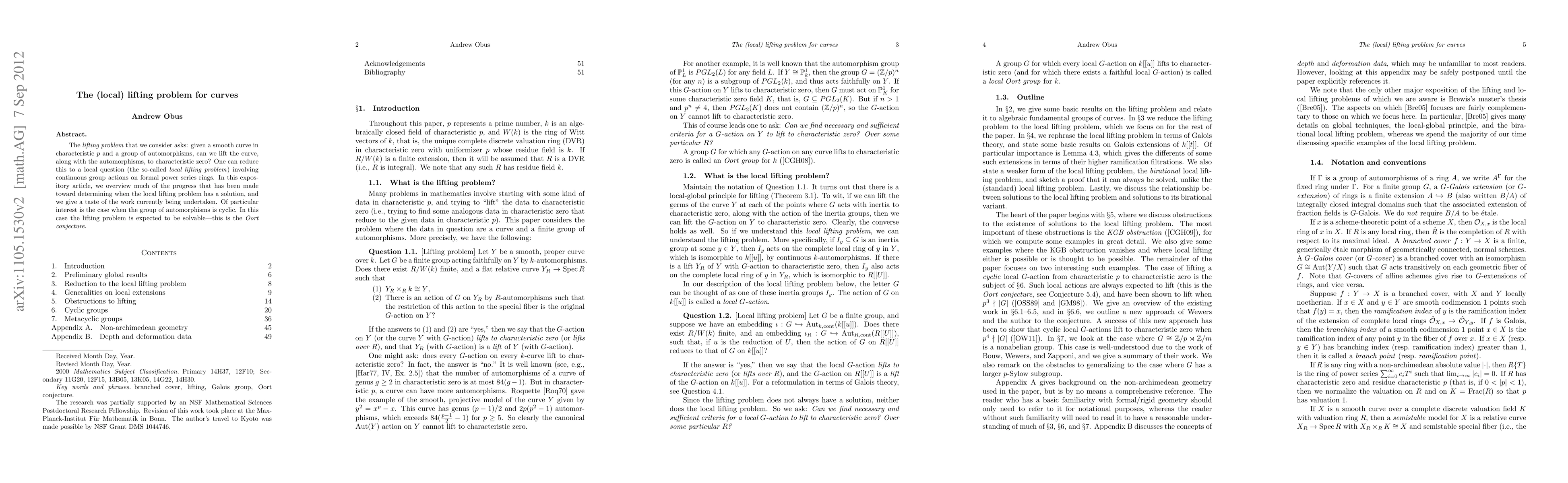 This paper discusses the local lifting problem for smooth curves in characteristic p, focusing on whether such curves and their automorphisms can be lifted to characteristic zero. It reviews progress on solving the local lifting problem and highlights ongoing work, particularly for cyclic automorphism groups, where the Oort conjecture suggests a solution.