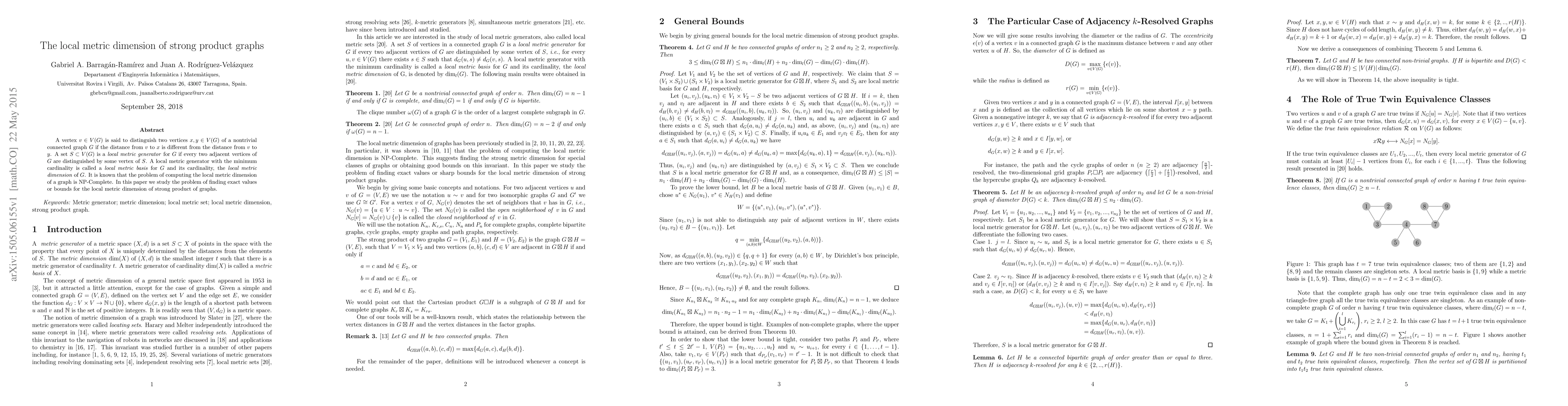 This paper investigates the local metric dimension of strong product graphs, focusing on determining the minimum cardinality of a local metric basis that distinguishes adjacent vertices. It explores exact values and bounds for this dimension, highlighting the NP-Completeness of the problem.