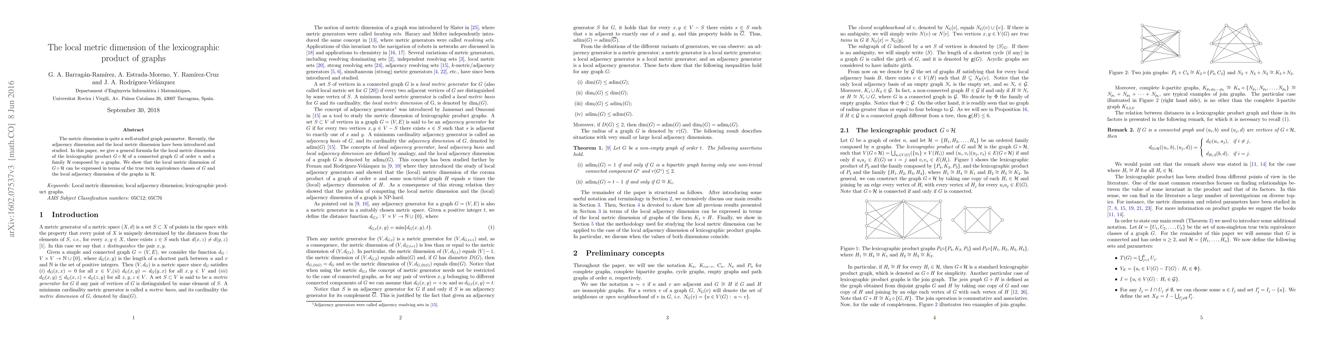The metric dimension is quite a well-studied graph parameter. Recently, the adjacency dimension and the local metric dimension have been introduced and studied. In this paper, we give a general formula for the local metric dimension of the lexicographic product $G \circ \mathcal{H}$ of a connected graph $G$ of order $n$ and a family $\mathcal{H}$ composed by $n$ graphs. We show that the local metric dimension of $G \circ \mathcal{H}$ can be expressed in terms of the true twin equivalence classes of $G$ and the local adjacency dimension of the graphs in $\mathcal{H}$.