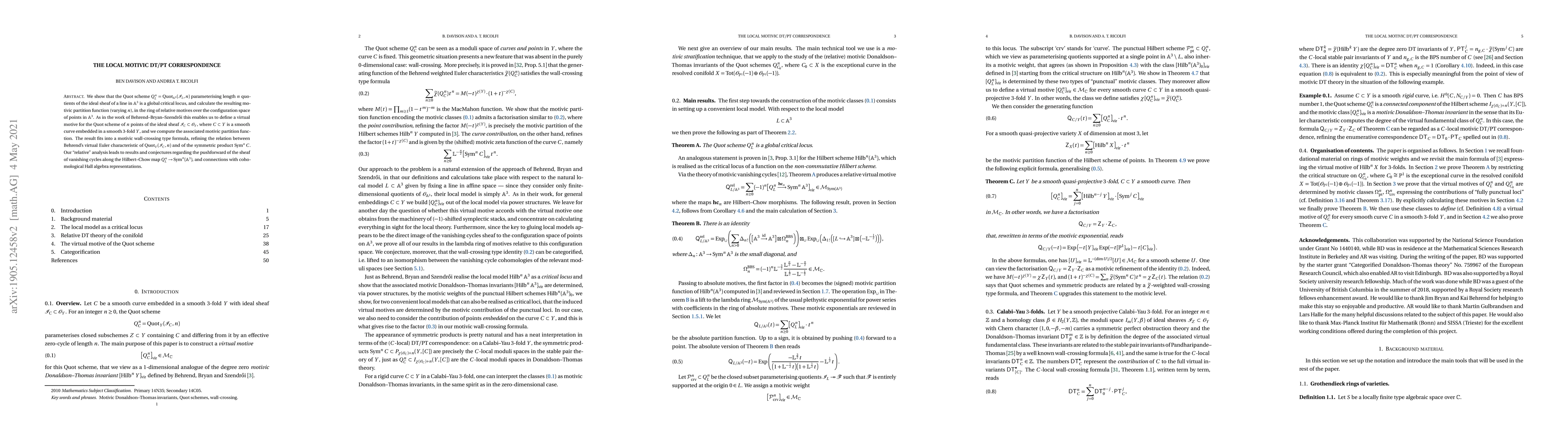 This research demonstrates that the Quot scheme Q_L^n is a global critical locus, enabling the calculation of its motivic partition function over configuration space of points in A^3. The findings provide a virtual motive for Quot schemes of n points on a curve embedded in a 3-fold, fitting into a motivic wall-crossing formula. The study also explores connections with cohomological Hall algebra representations through a relative analysis of the pushforward of the sheaf of vanishing cycles along the Hilbert-Chow map.