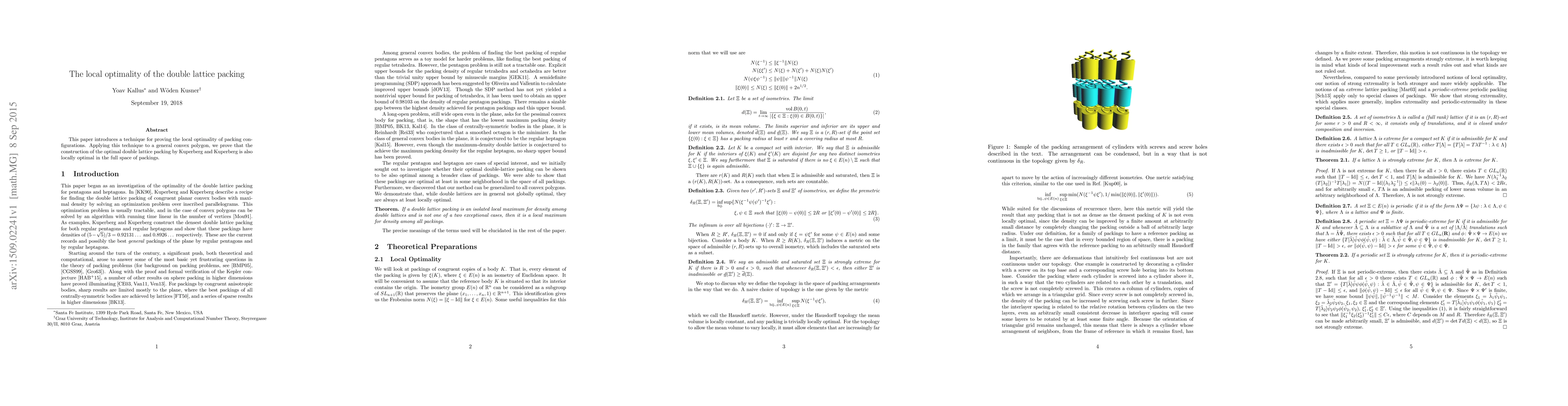 Researchers prove that a specific packing configuration is locally optimal using a new technique, extending previous results to a broader class of convex polygons.