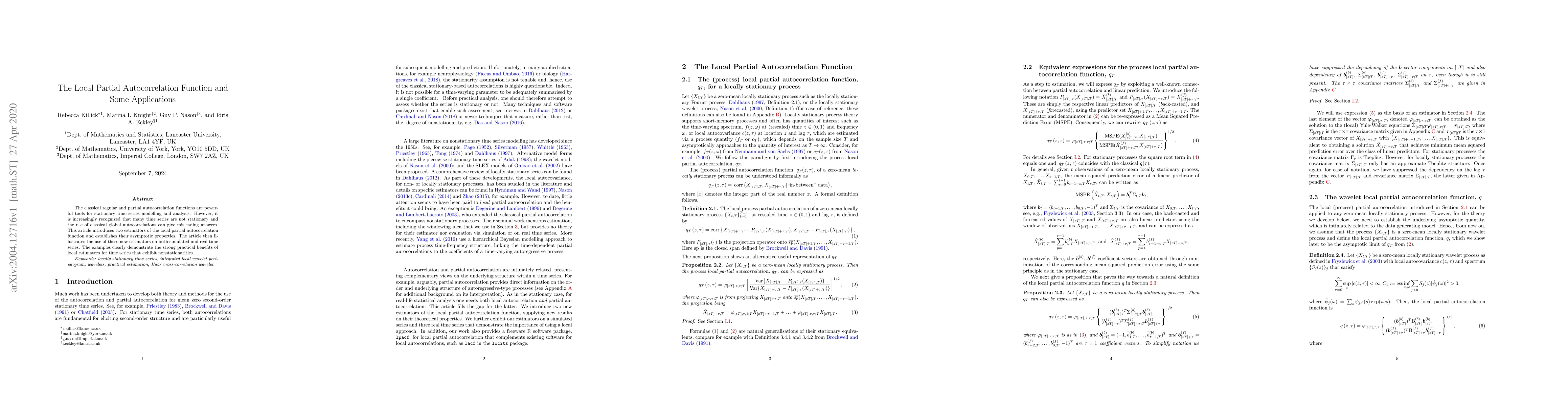 The classical regular and partial autocorrelation functions are powerful tools for stationary time series modelling and analysis. However, it is increasingly recognized that many time series are not stationary and the use of classical global autocorrelations can give misleading answers. This article introduces two estimators of the local partial autocorrelation function and establishes their asymptotic properties. The article then illustrates the use of these new estimators on both simulated and real time series. The examples clearly demonstrate the strong practical benefits of local estimators for time series that exhibit nonstationarities.