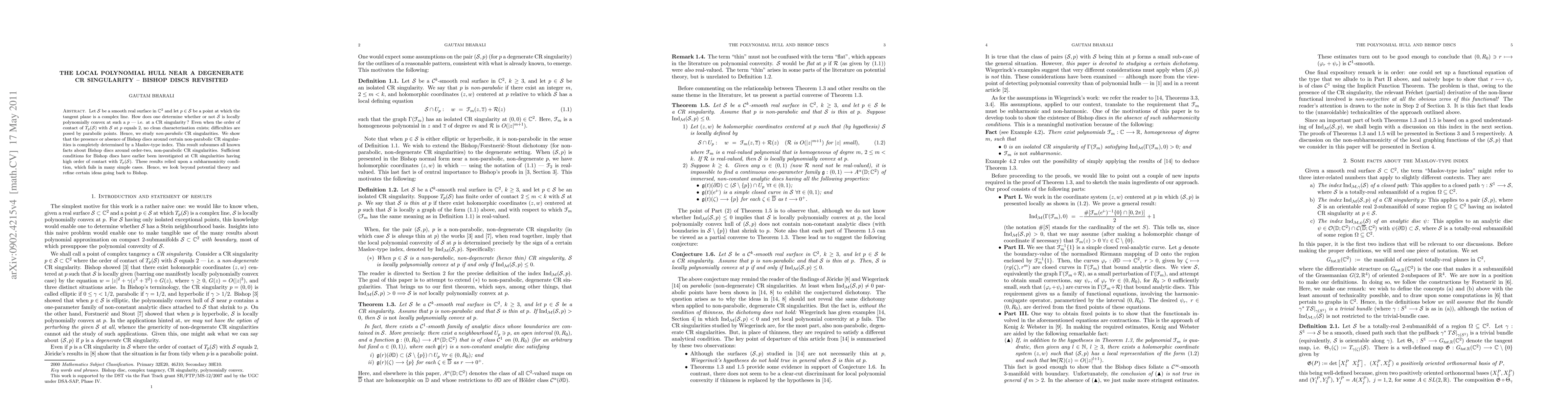 This paper investigates the local polynomial convexity of a smooth real surface in \(\mathbb{C}^2\) at a degenerate CR singularity where the tangent plane is a complex line. It determines the presence of Bishop discs around non-parabolic CR singularities using a Maslov-type index, providing a new characterization that overcomes limitations of previous subharmonicity-based approaches.