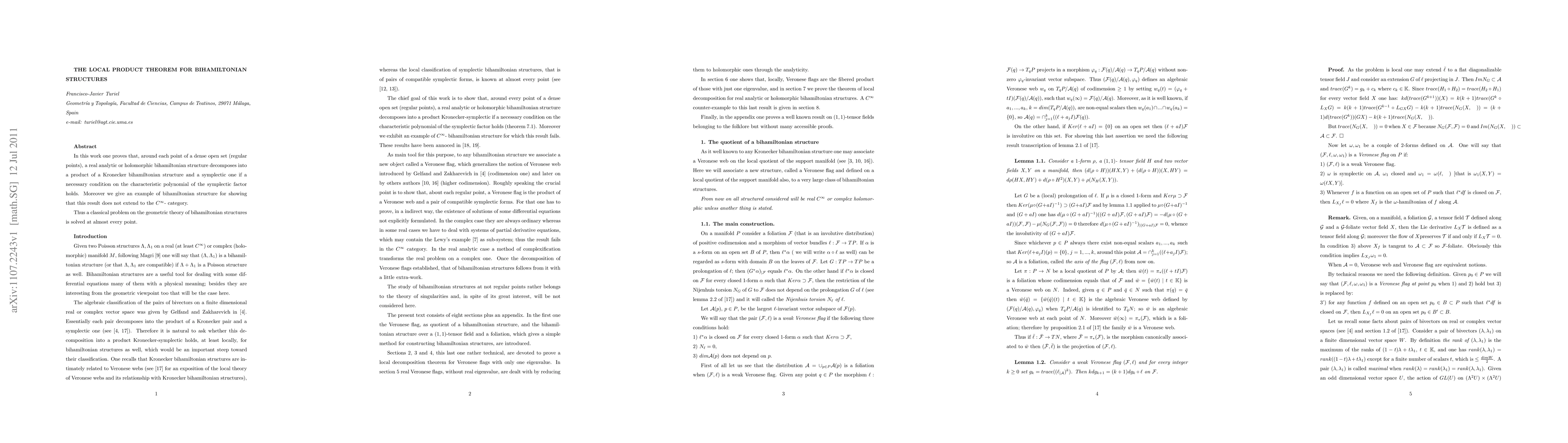 This paper proves that around regular points, a bihamiltonian structure decomposes into a product of a Kronecker and a symplectic structure under a specific condition. An example demonstrates that this result does not hold for $C^\infty$ structures, solving a classical problem in the geometric theory of bihamiltonian structures almost everywhere.