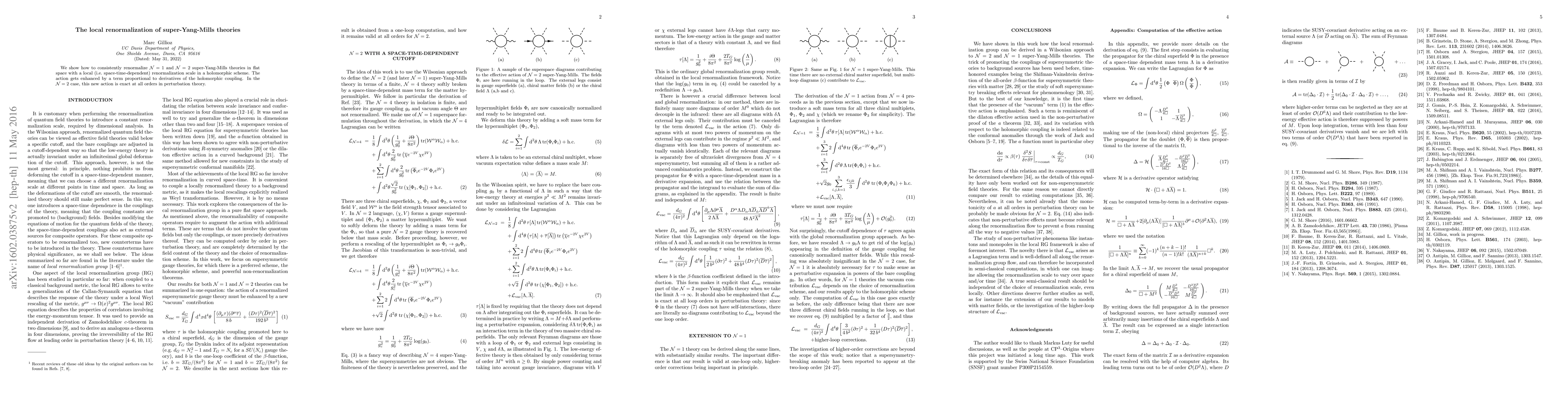 We show how to consistently renormalize $\mathcal{N} = 1$ and $\mathcal{N} = 2$ super-Yang-Mills theories in flat space with a local (i.e. space-time-dependent) renormalization scale in a holomorphic scheme. The action gets enhanced by a term proportional to derivatives of the holomorphic coupling. In the $\mathcal{N} = 2$ case, this new action is exact at all orders in perturbation theory.