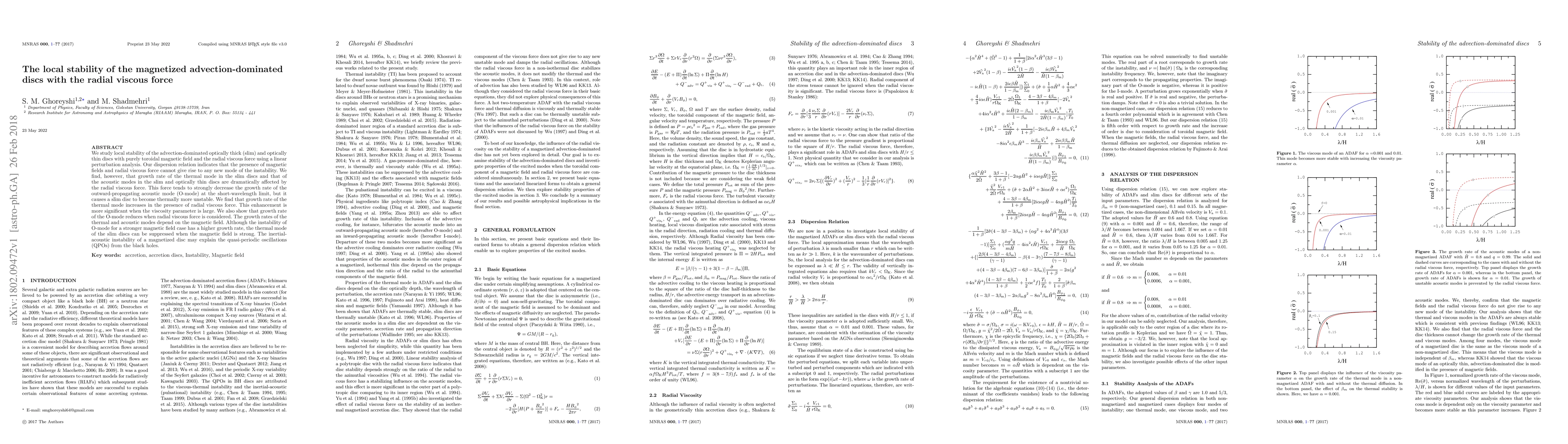 This paper investigates the local stability of magnetized advection-dominated discs with radial viscous force, finding no new instability modes but significant effects on thermal and acoustic mode growth rates. The radial viscous force decreases the growth rate of outward-propagating acoustic modes and enhances thermal instability, potentially explaining quasi-periodic oscillations in black holes.