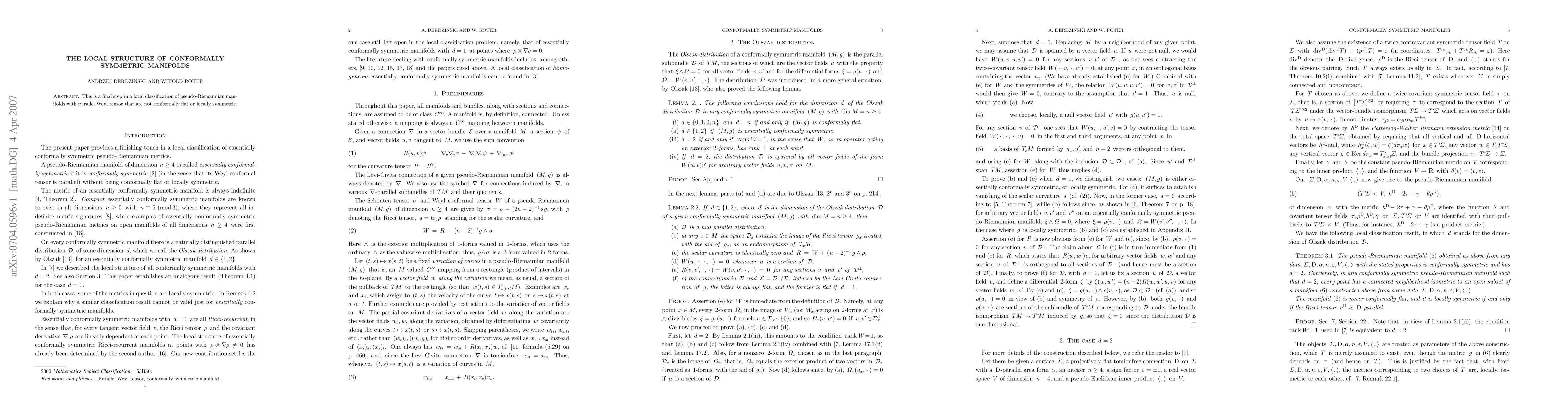 Summary: This paper completes the local classification of pseudo-Riemannian manifolds with a parallel Weyl tensor, focusing on those that are neither conformally flat nor locally symmetric, detailing their local structure.