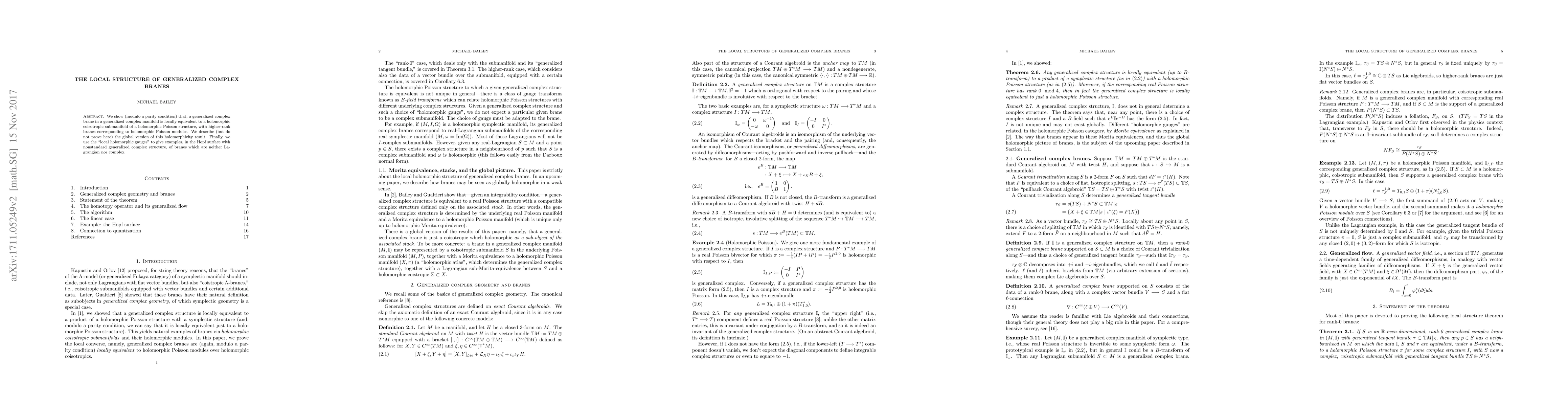 This paper demonstrates that generalized complex branes in a generalized complex manifold are locally equivalent to holomorphic coisotropic submanifolds within a holomorphic Poisson structure, with higher-rank branes corresponding to holomorphic Poisson modules. It also outlines a global version of this result without proof and provides examples of non-Lagrangian, non-complex branes in a Hopf surface.
