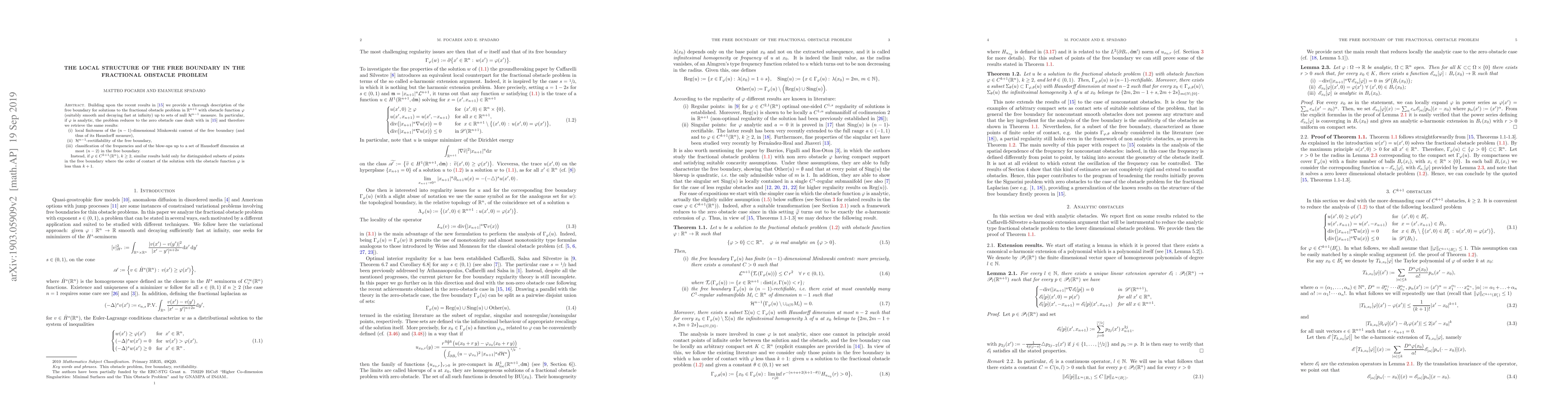 Researchers studied the free boundary of the fractional obstacle problem in n-dimensional space, finding that for smooth obstacle functions, the boundary is locally finite and rectifiable; however, for non-smooth functions, it has a more complex structure with different characteristics at different points.