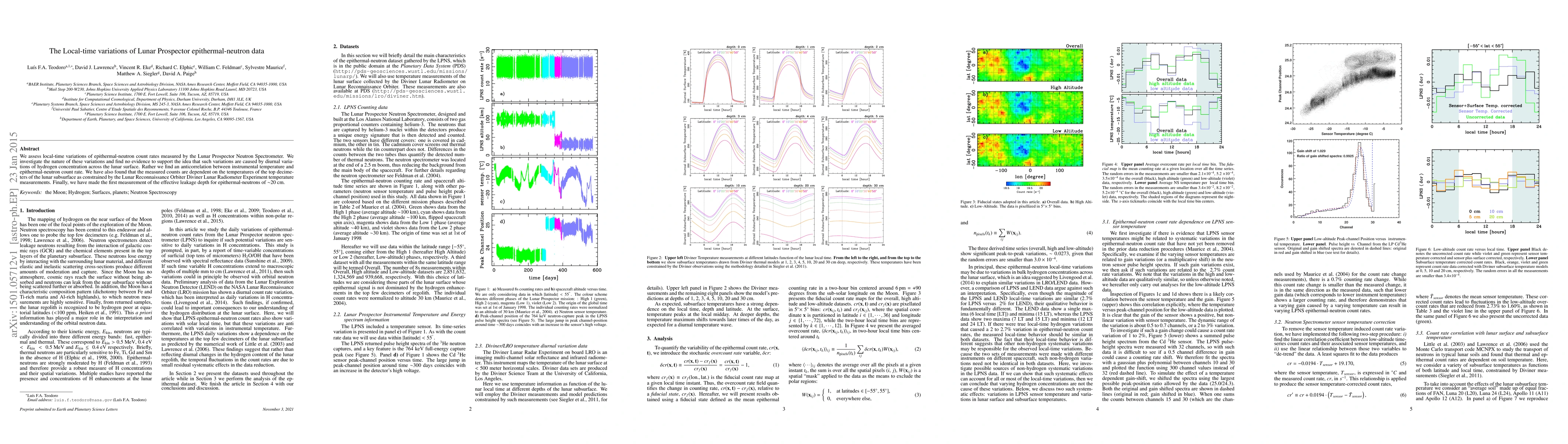 The study assesses local-time variations of epithermal-neutron count rates from Lunar Prospector data, investigating the nature of these variations and finding no evidence for diurnal hydrogen concentration variations. It correlates instrument temperature with neutron count rates and links measurements to Diviner Lunar Radiometer Experiment subsurface temperatures.