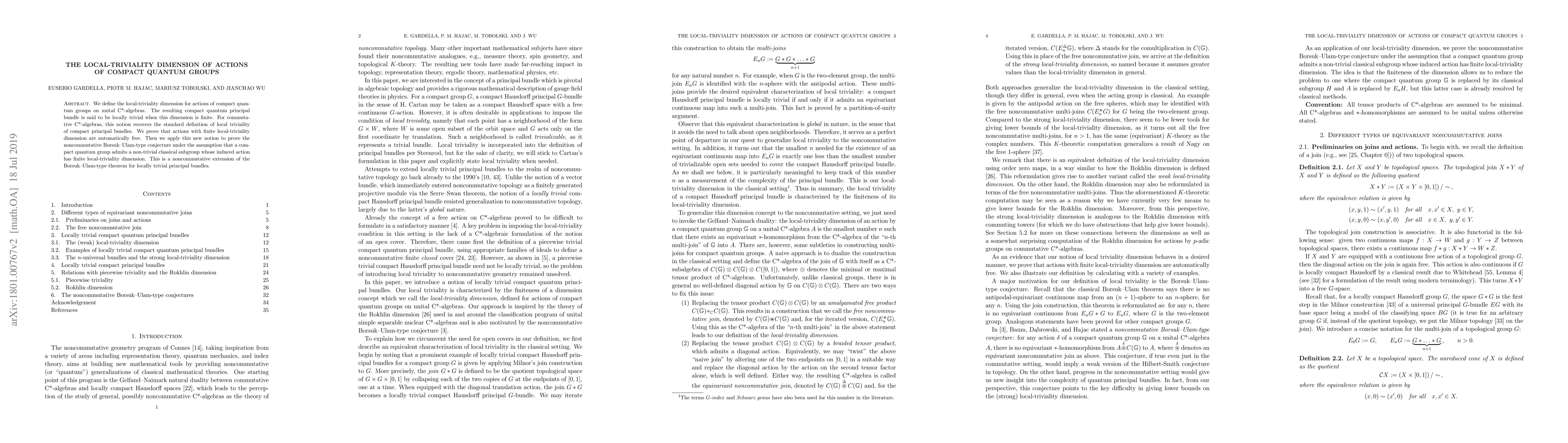 This paper introduces a new notion of local-triviality dimension for compact quantum groups on unital C*-algebras, proving that actions with finite local-triviality dimension are automatically free and extending the Borsuk-Ulam-type theorem to noncommutative settings.