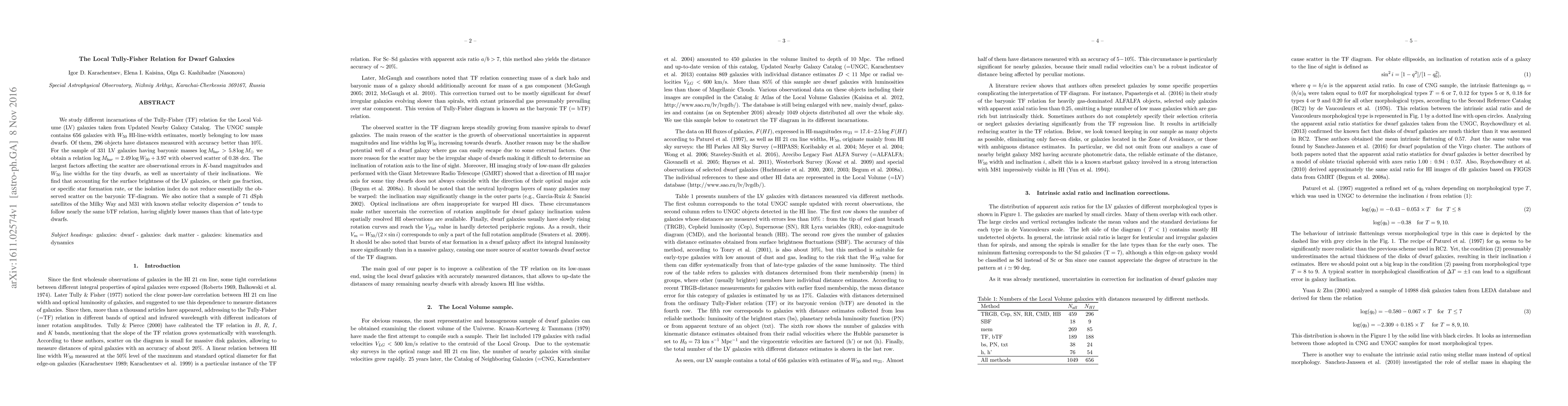 We study different incarnations of the Tully-Fisher (TF) relation for the Local Volume (LV) galaxies taken from Updated Nearby Galaxy Catalog. The UNGC sample contains 656 galaxies with $W_{50}$ HI-line-width estimates, mostly belonging to low mass dwarfs. Of them, 296 objects have distances measured with accuracy better than 10%. For the sample of 331 LV galaxies having baryonic masses $\log M_{bar} > 5.8 \log M_\odot$ we obtain a relation $\log M_{bar}= 2.49 \log W_{50} + 3.97$ with observed scatter of 0.38 dex. The largest factors affecting the scatter are observational errors in $K$-band magnitudes and $W_{50}$ line widths for the tiny dwarfs, as well as uncertainty of their inclinations. We find that accounting for the surface brightness of the LV galaxies, or their gas fraction, or specific star formation rate, or the isolation index do not reduce essentially the observed scatter on the baryonic TF-diagram. We also notice that a sample of 71 dSph satellites of the Milky Way and M31 with known stellar velocity dispersion $\sigma^*$ tends to follow nearly the same bTF relation, having slightly lower masses than that of late-type dwarfs.