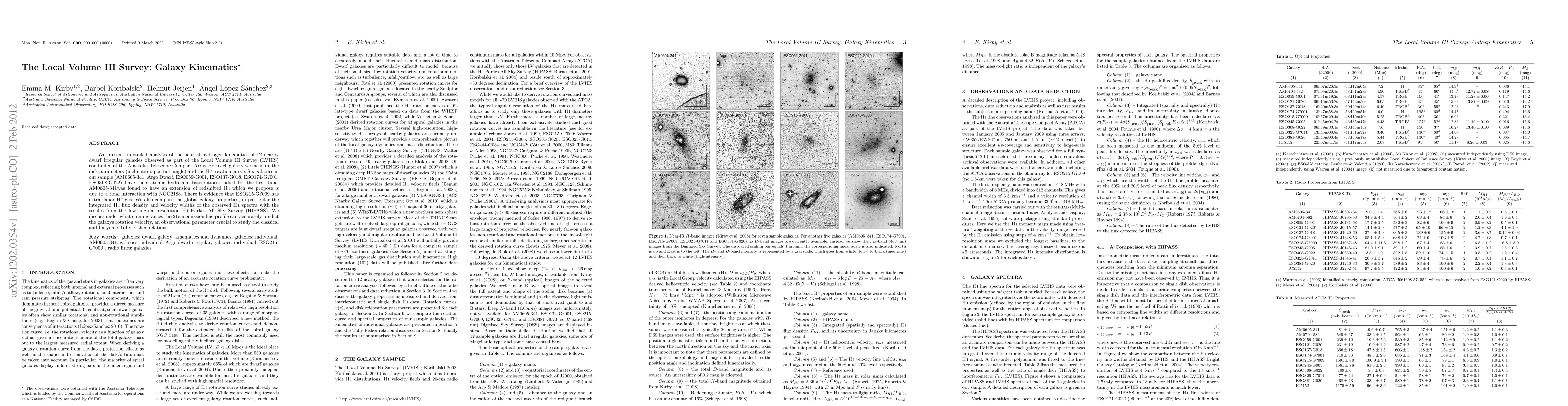 This paper analyzes the neutral hydrogen kinematics of 12 nearby dwarf irregular galaxies from the Local Volume HI Survey, measuring disk parameters and HI rotation curves, and identifies tidal interactions and extraplanar HI gas in specific galaxies. It also compares these results with the HI Parkes All Sky Survey, assessing the accuracy of 21cm emission line profiles in predicting galaxy rotation velocities.