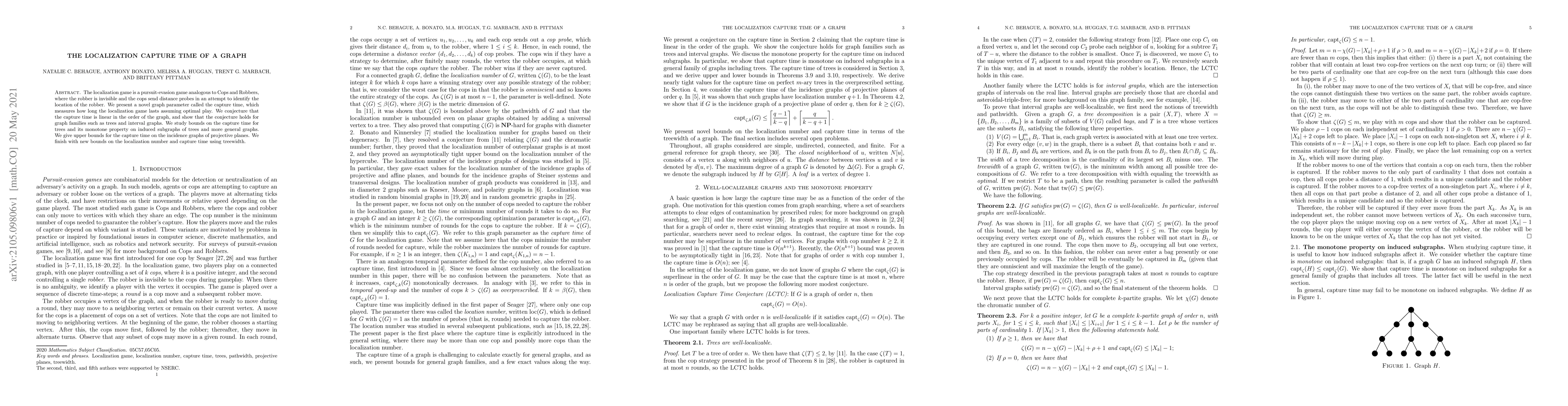 This research introduces the 'capture time' parameter for the localization game, a variant of Cops and Robbers. The study conjectures that capture time is linearly proportional to the graph's order, confirmed for trees and interval graphs. It explores bounds on capture time for trees, its monotone property, and provides upper bounds for incidence graphs of projective planes. The paper also discusses new bounds on the localization number and capture time using treewidth.