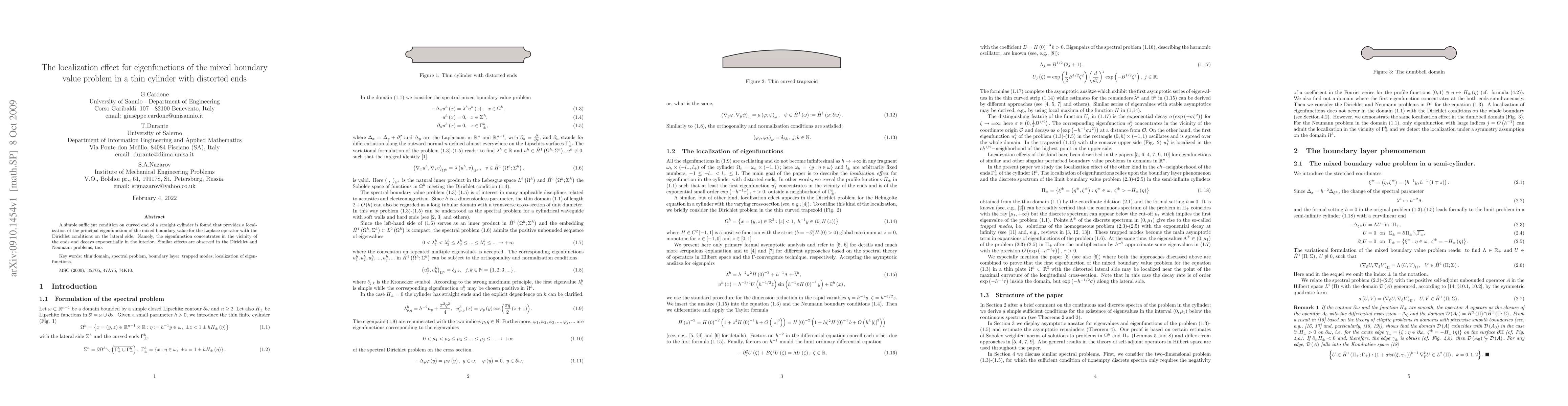A study finds that eigenfunctions of a Laplace operator with Dirichlet conditions in a thin cylinder concentrate near the ends and decay exponentially inside.