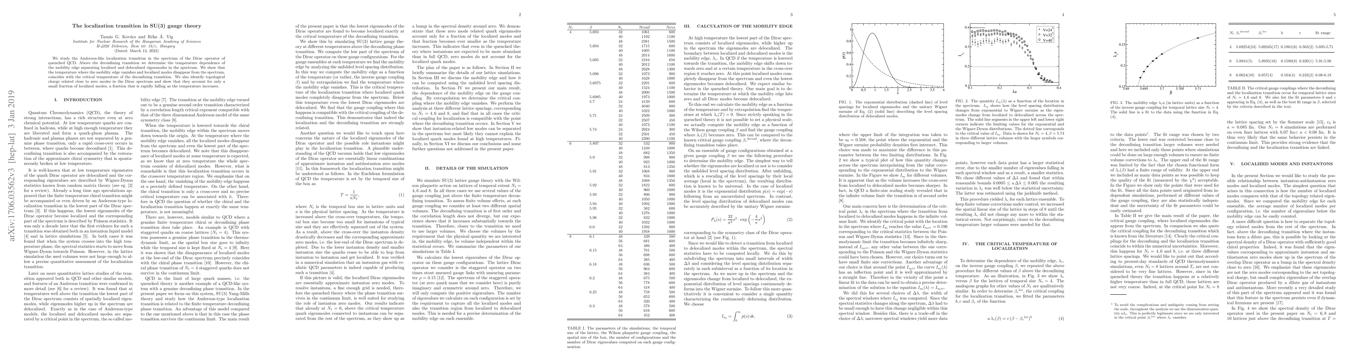We study the Anderson-like localization transition in the spectrum of the Dirac operator of quenched QCD. Above the deconfining transition we determine the temperature dependence of the mobility edge separating localized and delocalized eigenmodes in the spectrum. We show that the temperature where the mobility edge vanishes and localized modes disappear from the spectrum, coincides with the critical temperature of the deconfining transition. We also identify topological charge related close to zero modes in the Dirac spectrum and show that they account for only a small fraction of localized modes, a fraction that is rapidly falling as the temperature increases.
