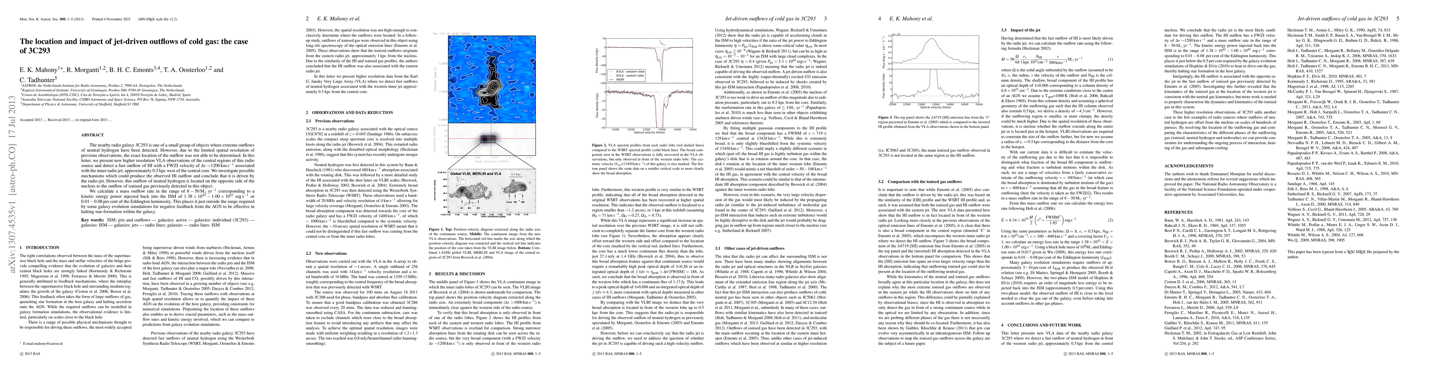 Researchers used high-resolution VLA observations to detect a fast outflow of neutral hydrogen gas from the radio galaxy 3C293, driven by the radio jet, with a mass outflow rate of 8-50 solar masses/year.