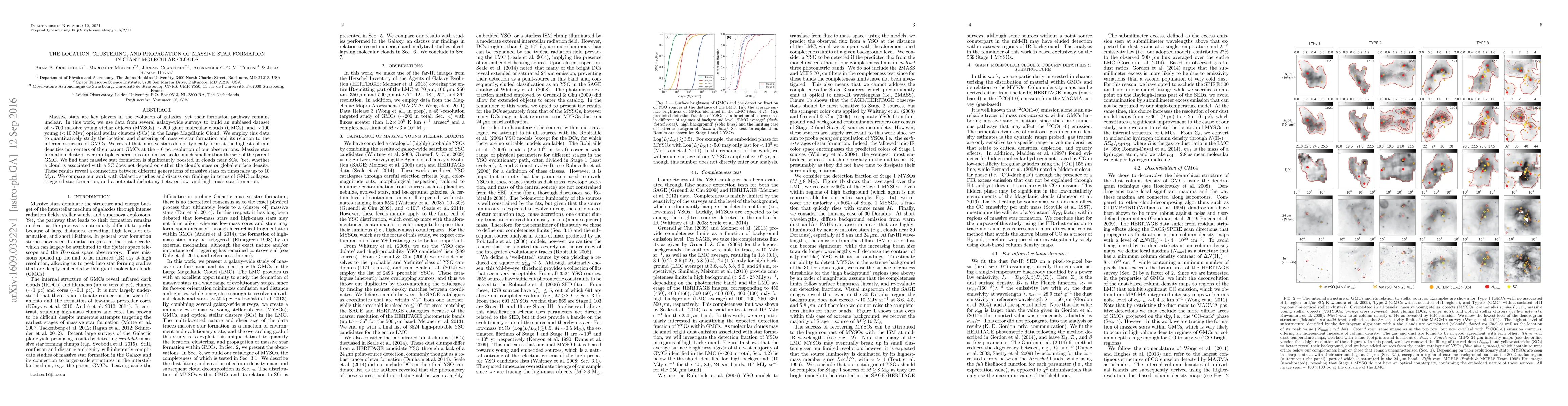 This paper investigates the location and clustering of massive star formation within giant molecular clouds (GMCs) in the Large Magellanic Cloud, finding that massive stars form clusters over multiple generations and are significantly boosted near young optical stellar clusters, despite not forming at the highest column densities. The study suggests a connection between different generations of massive stars and discusses implications for GMC collapse and triggered star formation.