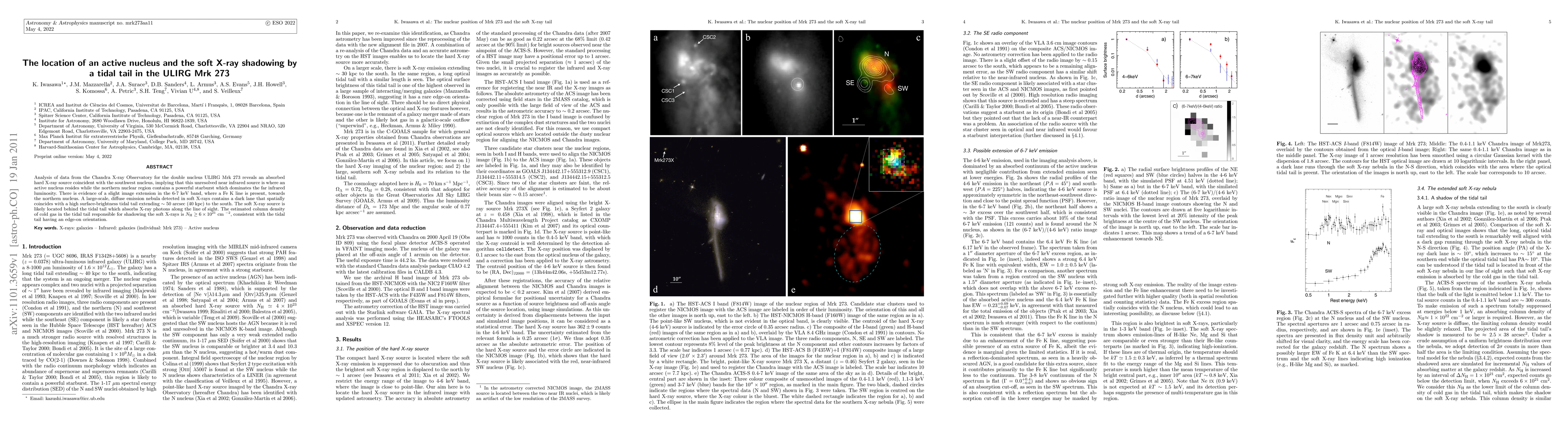 The study of ULIRG Mrk 273 reveals an active nucleus located in a southwestern region, with its hard X-ray source absorbed by gas in a tidal tail extending towards the northern nucleus. This absorption is consistent with a dark lane in soft X-ray emission and suggests that the tidal tail acts as a shadowing filter for the X-rays.