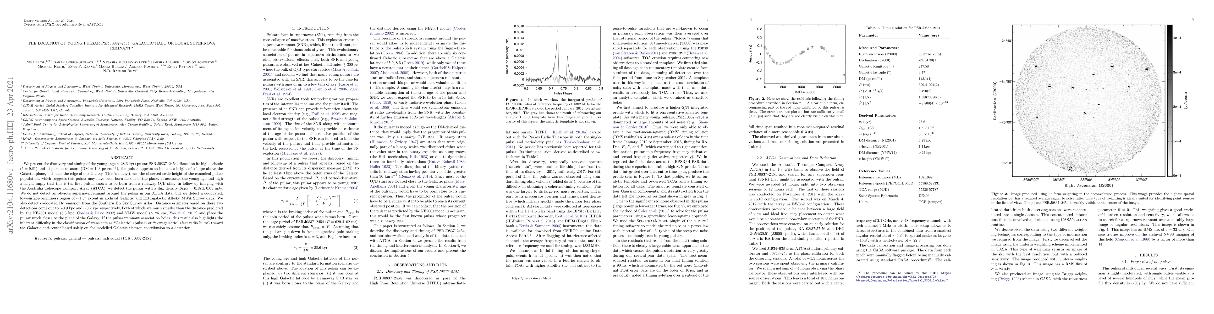 The young pulsar PSR J0837$-$2454, located at a high latitude and significant $z$-height, suggests it may originate from a runaway O/B star far from the Galactic plane. Imaging data do not show an obvious supernova remnant, but nearby low-surface-brightness regions and H$\alpha$ emissions indicate a much closer distance to the Galactic plane than previously modeled.