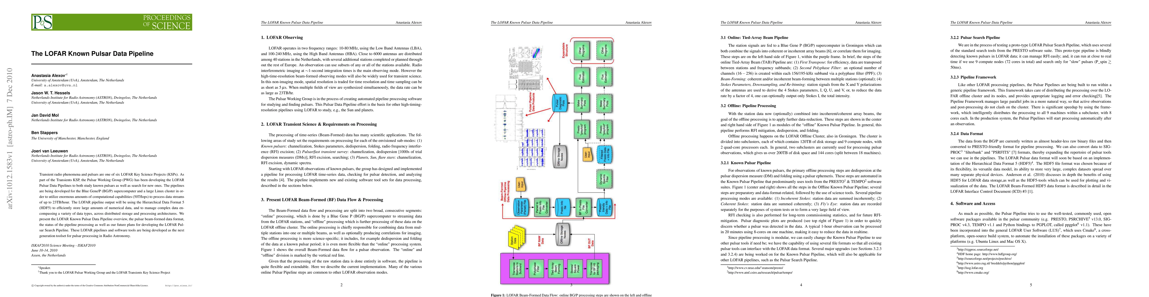 The LOFAR Known Pulsar Data Pipeline leverages supercomputers and a large Linux cluster to process vast amounts of pulsar data, utilizing HDF5 for efficient storage and management. The pipeline aims to enhance the study of known pulsars and search for new ones, representing a next-generation toolset in radio astronomy.