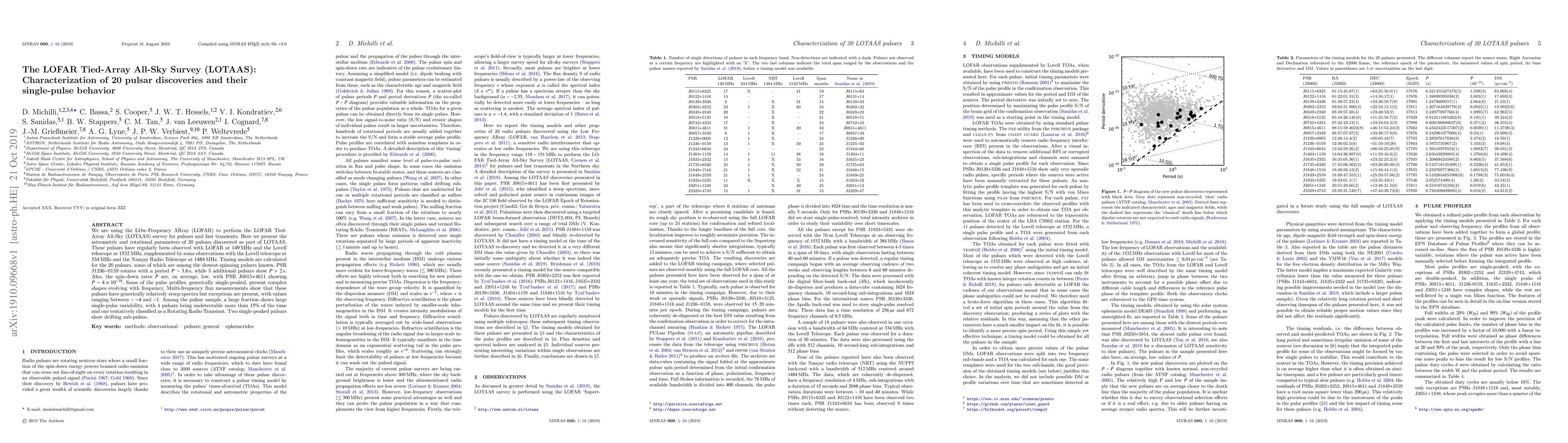 The LOFAR Tied-Array All-Sky Survey (LOTAAS) discovered 20 pulsars, characterized by slow rotation periods and low spin-down rates. These pulsars exhibit complex single-pulse behavior, including drifting sub-pulses and significant variability, with some classified as Rotating Radio Transients.