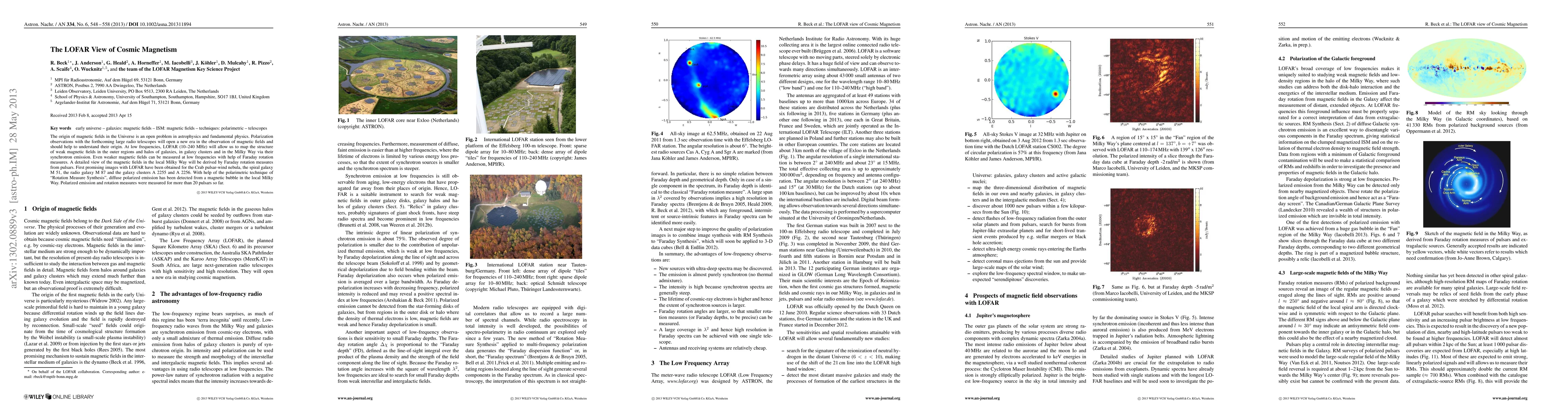 The origin of magnetic fields in the Universe is an open problem in astrophysics and fundamental physics. Polarization observations with the forthcoming large radio telescopes will open a new era in the observation of magnetic fields and should help to understand their origin. At low frequencies, LOFAR (10-240 MHz) will allow us to map the structure of weak magnetic fields in the outer regions and halos of galaxies, in galaxy clusters and in the Milky Way via their synchrotron emission. Even weaker magnetic fields can be measured at low frequencies with help of Faraday rotation measures. A detailed view of the magnetic fields in the local Milky Way will be derived by Faraday rotation measures from pulsars. First promising images with LOFAR have been obtained for the Crab pulsar-wind nebula, the spiral galaxy M51, the radio galaxy M87 and the galaxy clusters A2255 and A2256. With help of the polarimetric technique of "Rotation Measure Synthesis", diffuse polarized emission has been detected from a magnetic bubble in the local Milky Way. Polarized emission and rotation measures were measured for more than 20 pulsars so far.