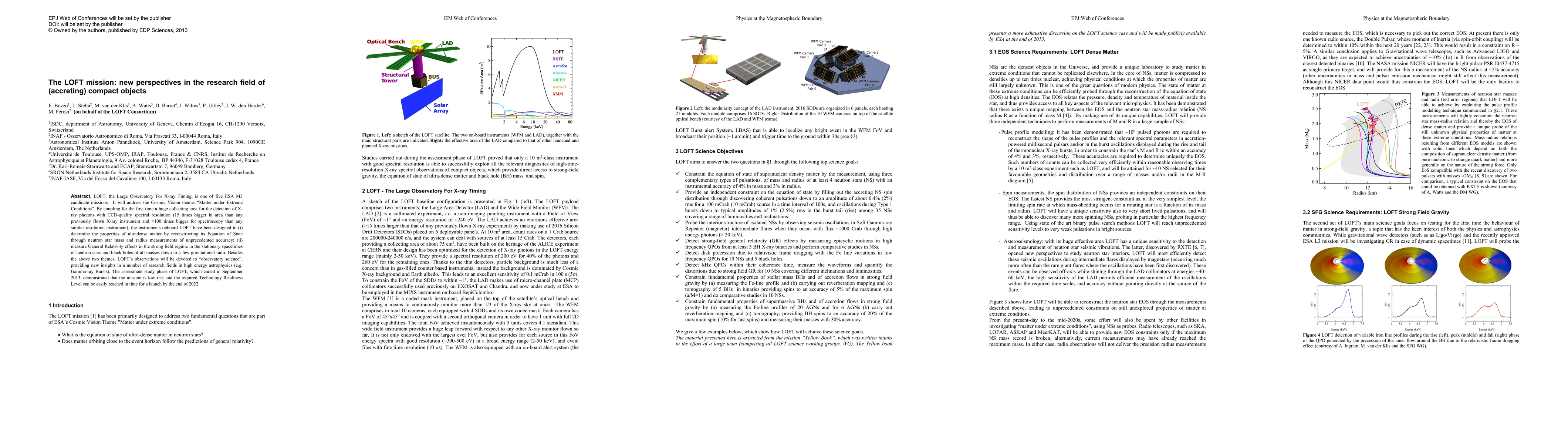 LOFT (Large Observatory For X-ray Timing) is an ESA mission set to launch by 2022. It aims to study ultradense matter by precisely measuring neutron star masses and radii, and test General Relativity in extreme gravitational fields around neutron stars and black holes. The mission's advanced technology promises significant contributions to high-energy astrophysics research, including gamma-ray bursts investigation.